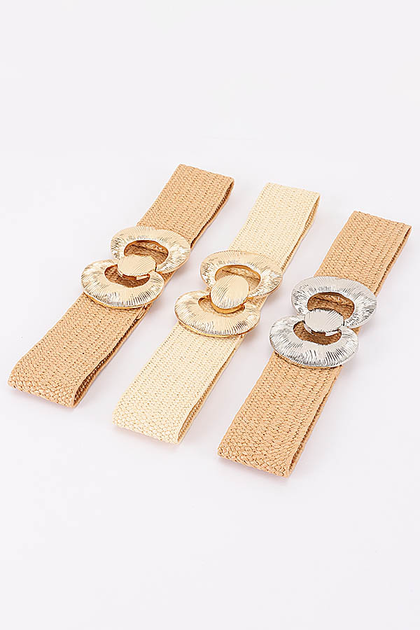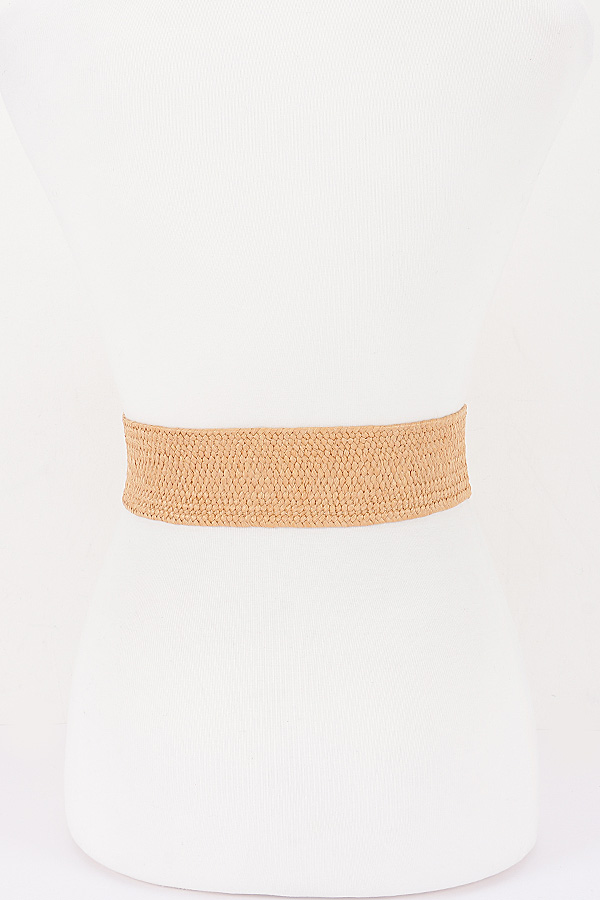- * Faux Straw Big Metal Buckle Elastic Belt