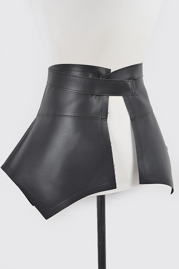 - * This is a Faux Leather Plus Size Skirt Belt from H&D Accessories. It has a wide, structured design with a bow detail at the front. The faux leather material gives it a sleek and stylish appearance, and the unique, flared shape adds a distinctive touch to an outfit.