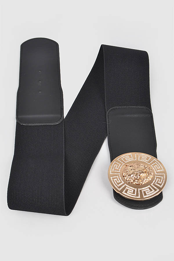 - * Introducing the "Lion Buckle Plus Size Elastic Belt" – a stunning black belt featuring a striking gold medallion that embodies elegance. Perfect for those who appreciate both style and comfort, this belt is designed to make a statement while providing the perfect fit for all body types. Elevate your wardrobe with the Lion Buckle Plus Size Elastic Belt from H&D Accessories.
