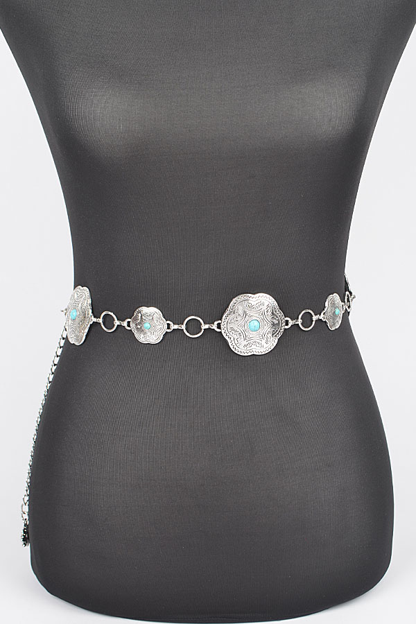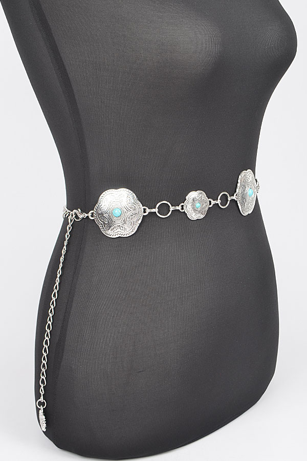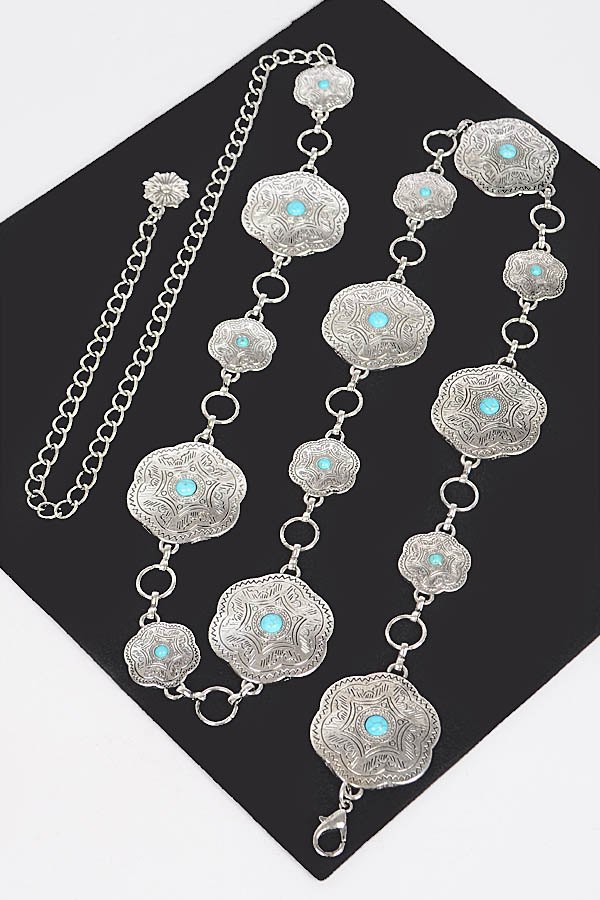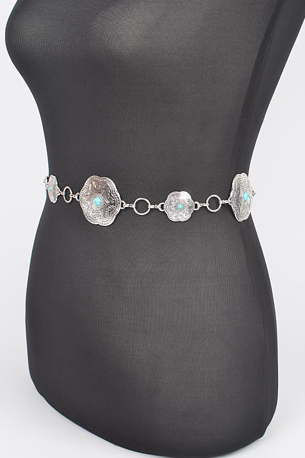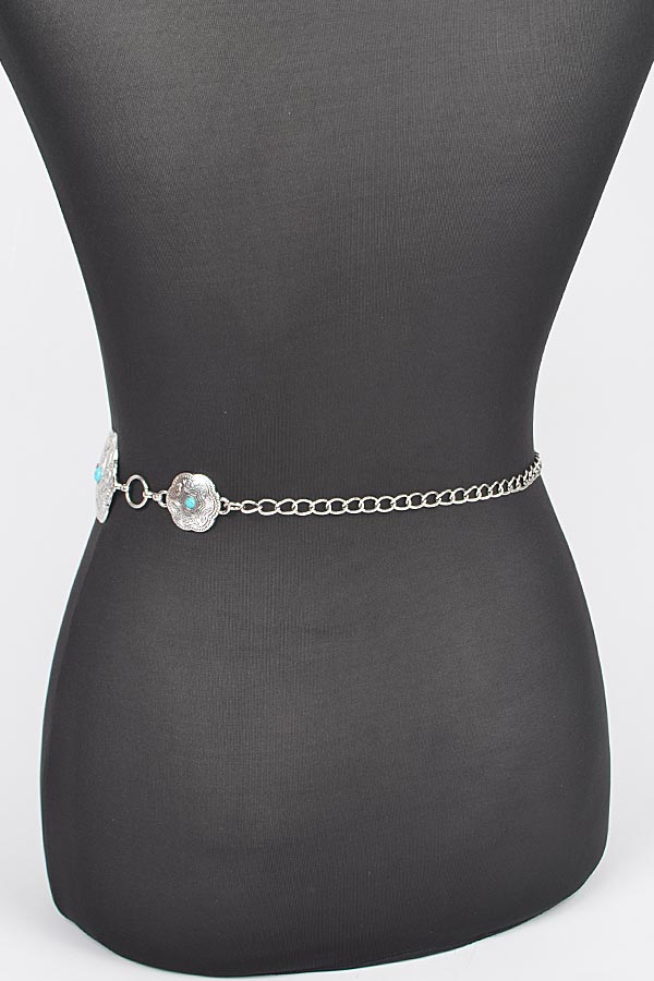 - * Plus Size Metal Chain Belt W/Turquoise