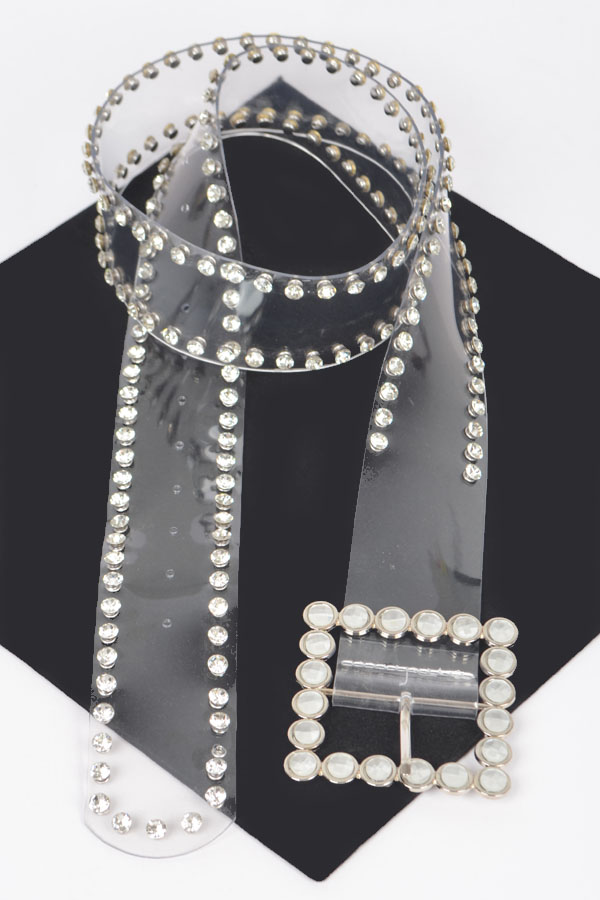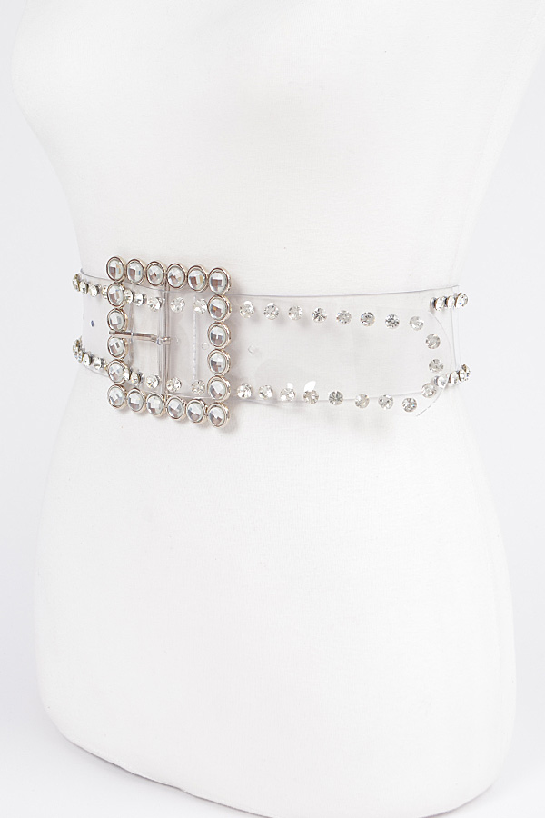 - * Pearl Buckle Plus Size Clear Belt W/Pearl