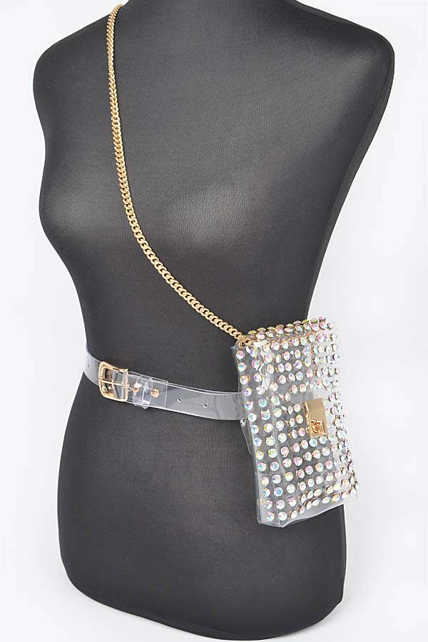 - * Rhinestone Clear Plus Size Belt Bag W/Chain