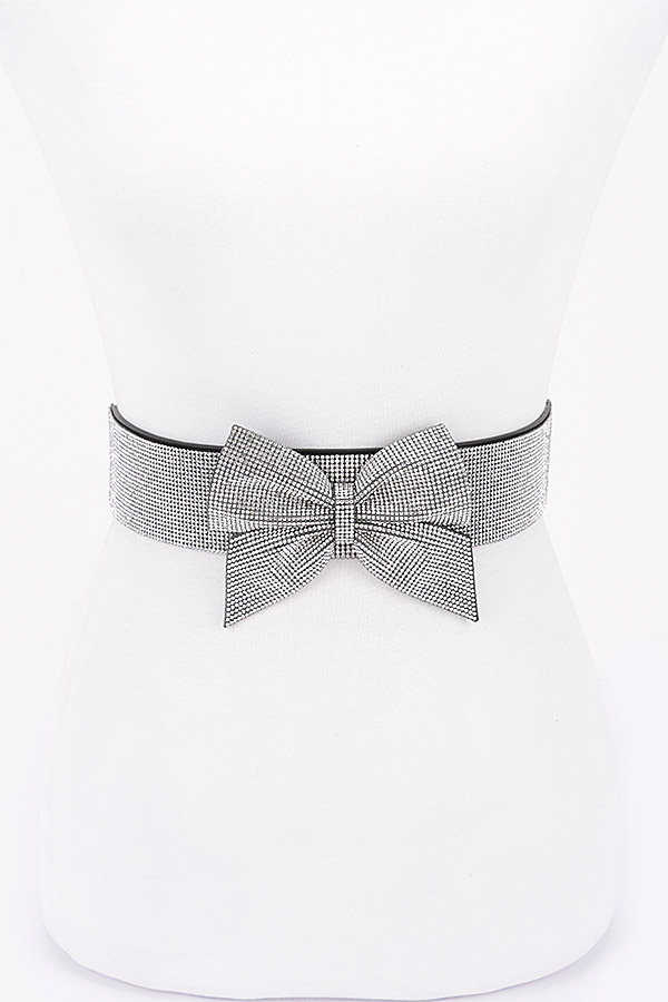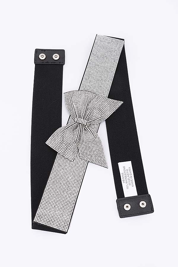 - * Introducing the "Rhinestone Ribbon Elastic Plus Size Belt" by H&D Accessories. This exquisite Plus Size Belt features a charming bow design, adding a touch of elegance and femininity to any outfit.