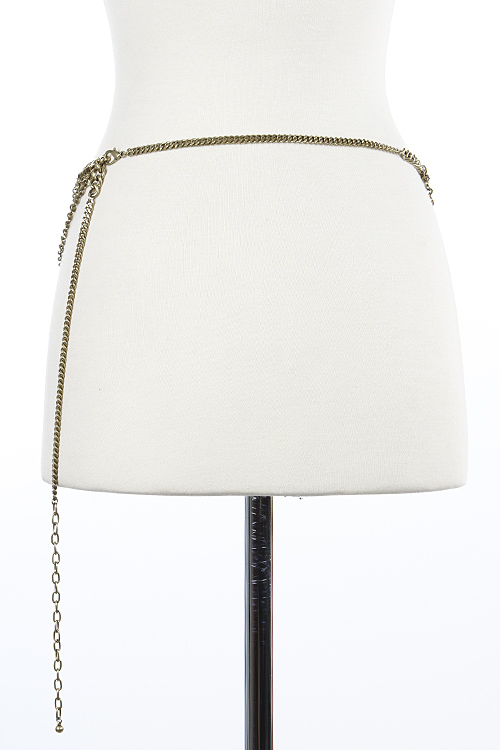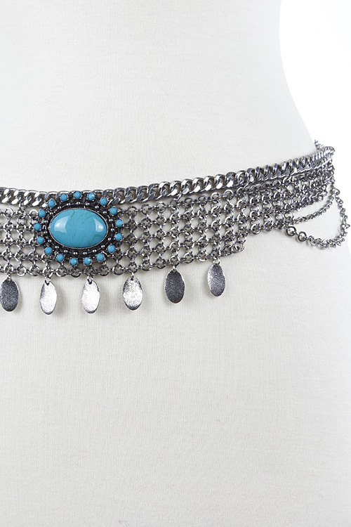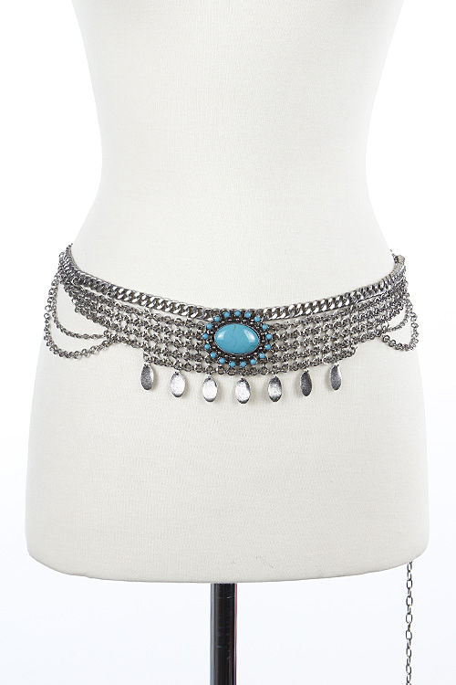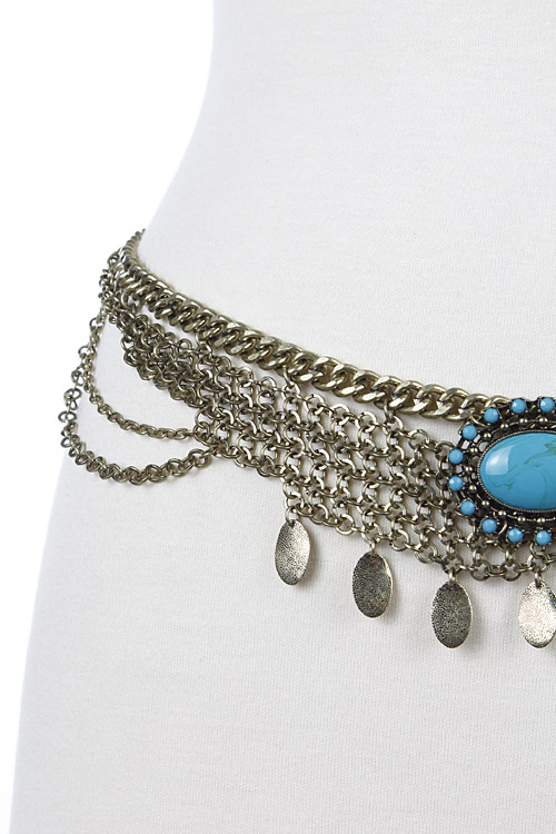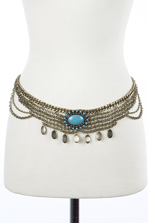 • * Antique Stone Bead Centered Chain Belt 5FAI * 40 x 2.75" approx.