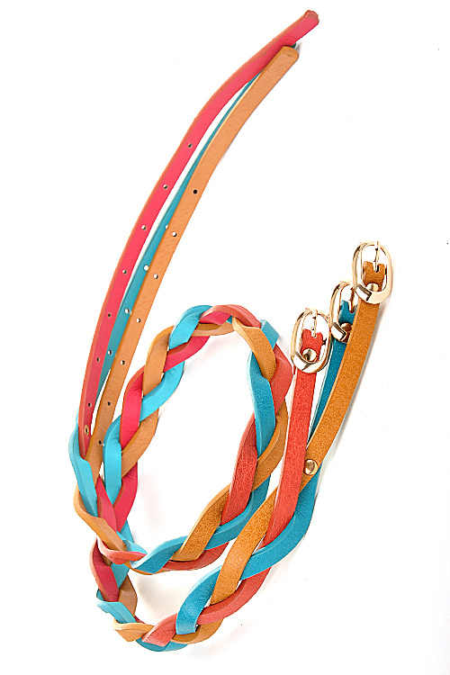 • * Trio buckle braided belt * Approx. width: 1". Length: 42". * Faux leather * Pack of 3 pcs
