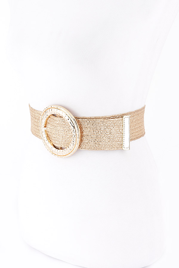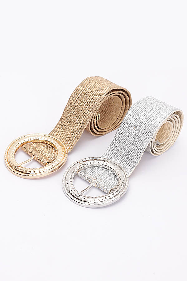 - * Hammered Metal Buckle Metallic Stretch Belt