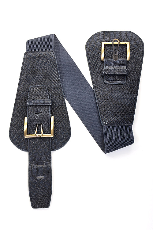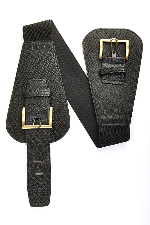 • * Faux Leather Buckle Elastic Belt * POLYURETHANE/ ELASTIC. * APPROX. WIDTH:4".LENGTH28"