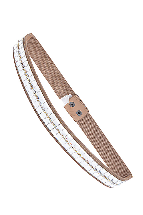 • * Cubic Rhinestone Bling Elastic Belt * POLYURETHANE/ ELASTIC. * APPROX. WIDTH:1.25".LENGTH28.75"