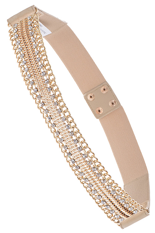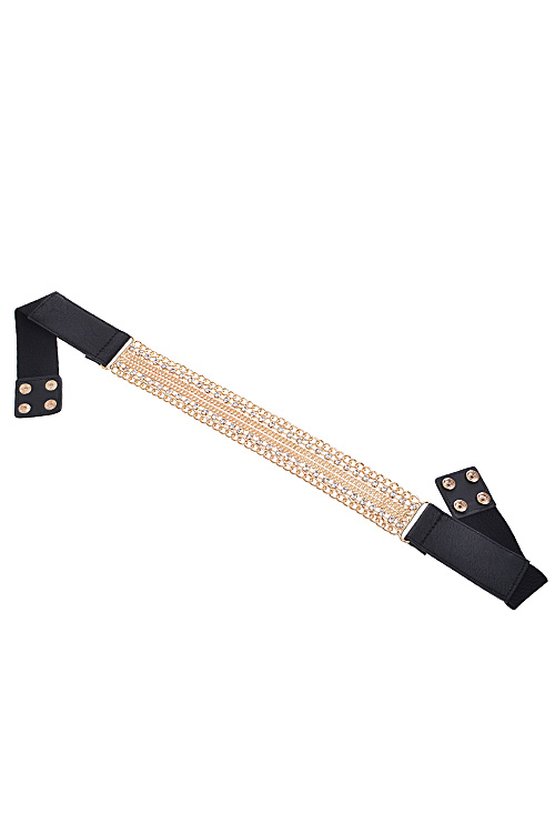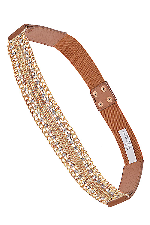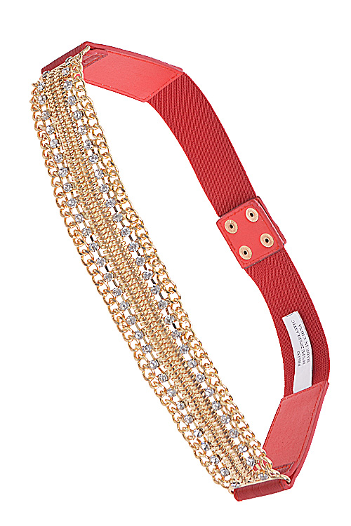• * Chain Edge Rhinestone Lined Fashion Belt * POLYURETHANE/ ELASTIC. * APPROX. WIDTH:1.5".LENGTH30"