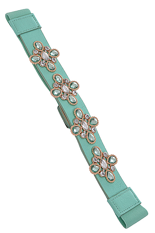 - * Rhinestone flower belt * POLYURETHANE/ ELASTIC. * APPROX. WIDTH:1.5".LENGTH29.5"