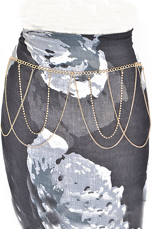 • * Double Cross Chain Hanging Fashion Belt * POLYURETHANE/ ELASTIC. * APPROX. WIDTH:1".LENGTH46"