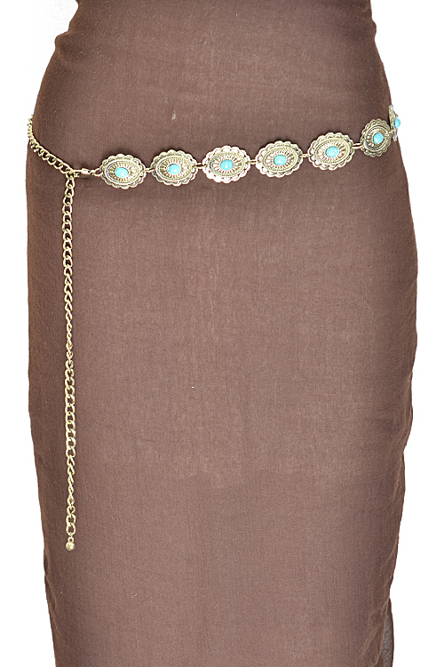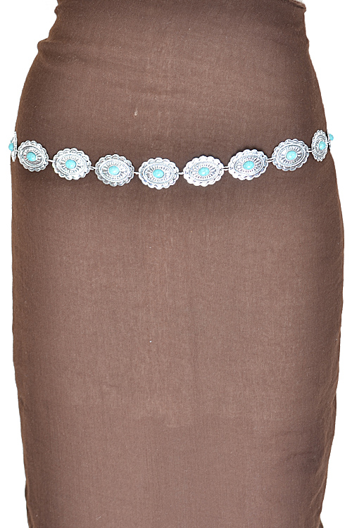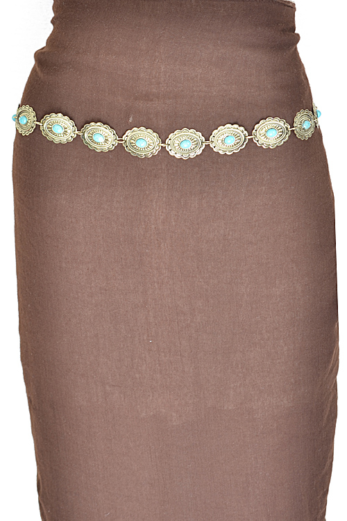 - * Turquoise Bead Centered Disk Linked Belt * POLYURETHANE/ ELASTIC. * APPROX. WIDTH:1".LENGTH44"