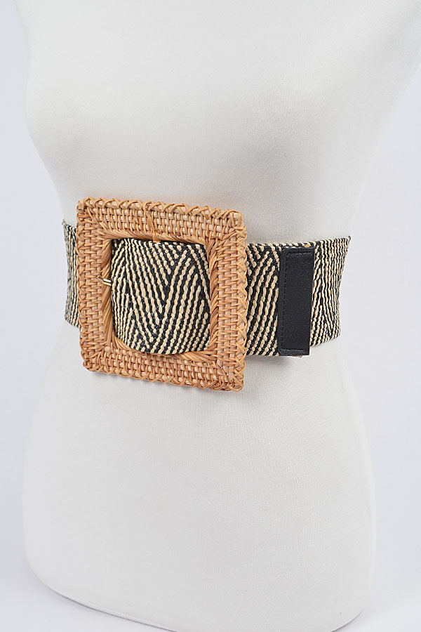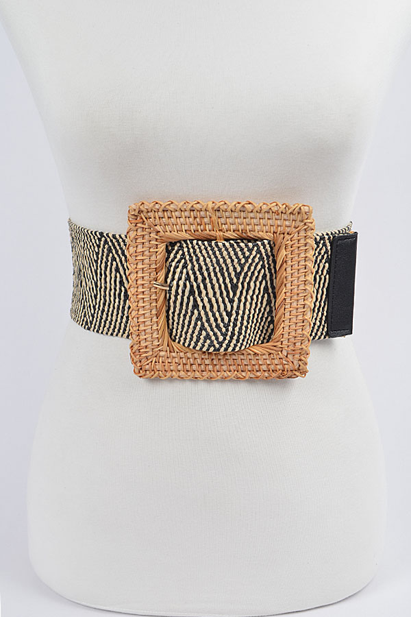 • * Oversized Bamboo Buckle Waist Elastic Belt