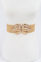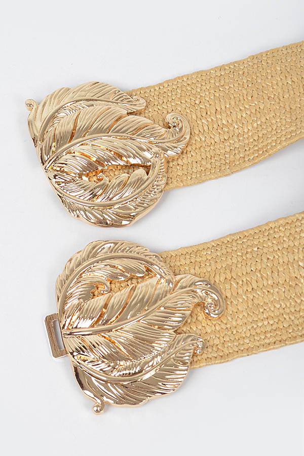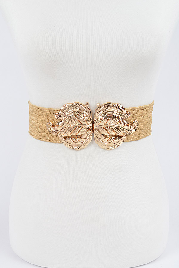 - * Introducing the "Golden Leaf Metal Belt" by H&D Accessories, a stylish Elastic belt featuring a luxurious gold metal buckle with a unique leaf design.
