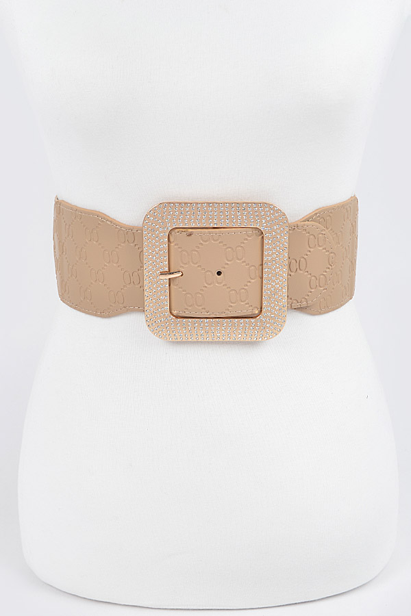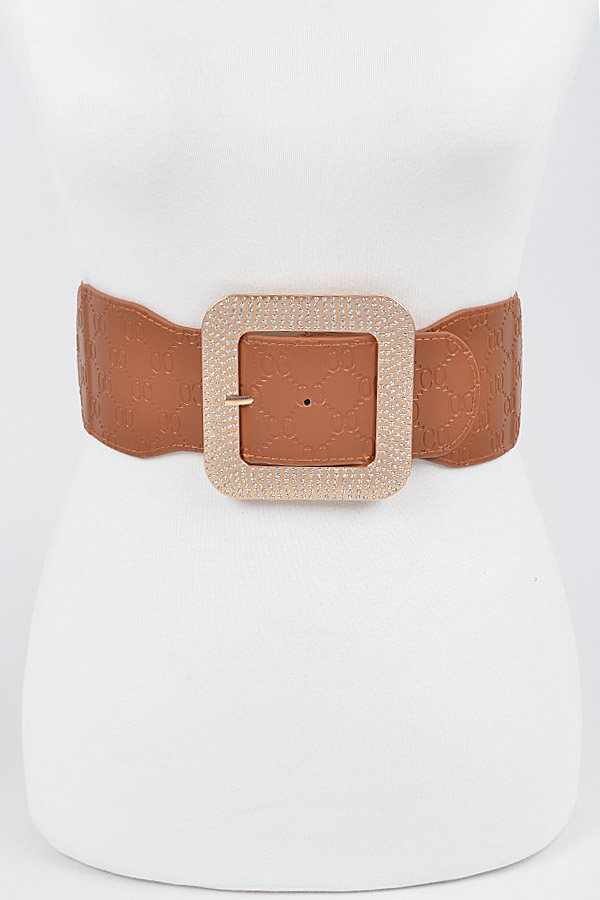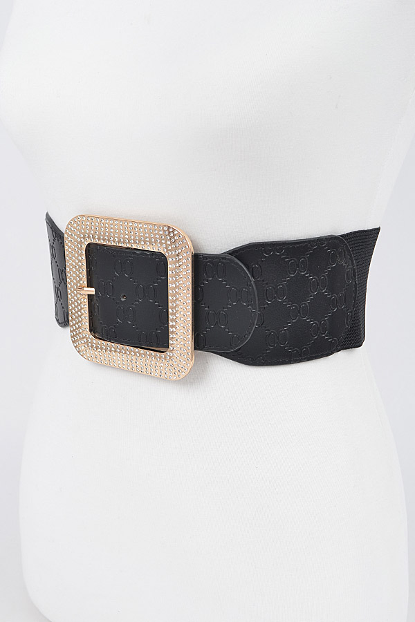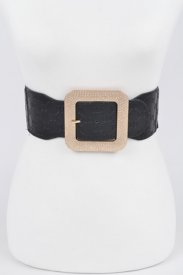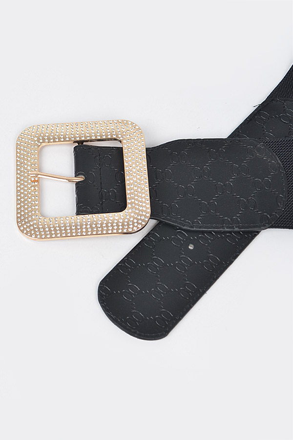 - * Big Rhinestone Buckle Embossed Elastic Belt