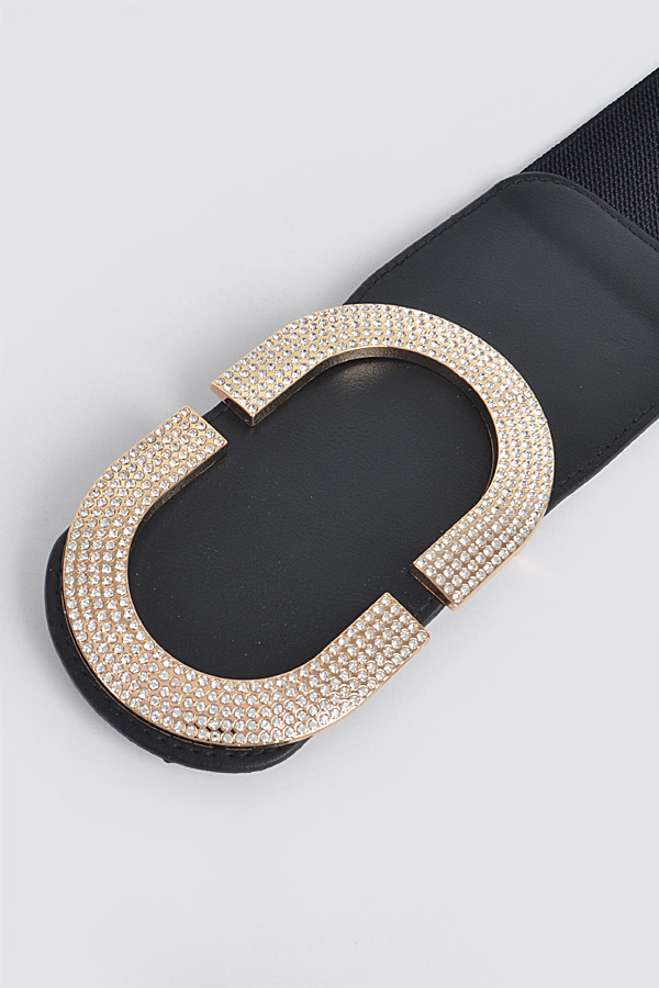 • * Rhinestone Buckle Stretch Belt