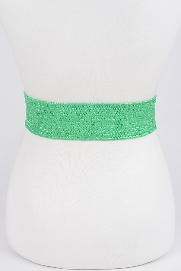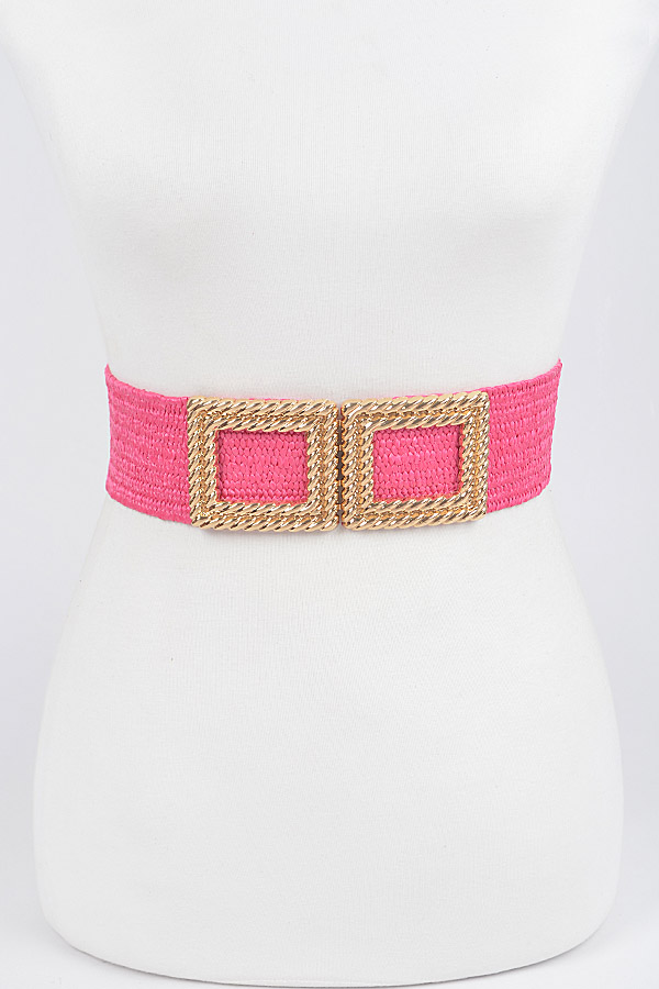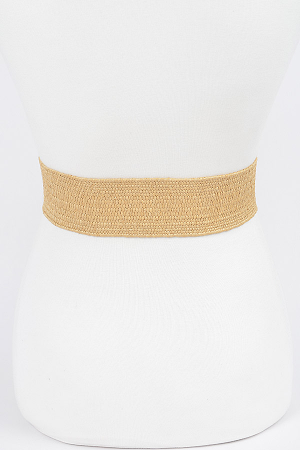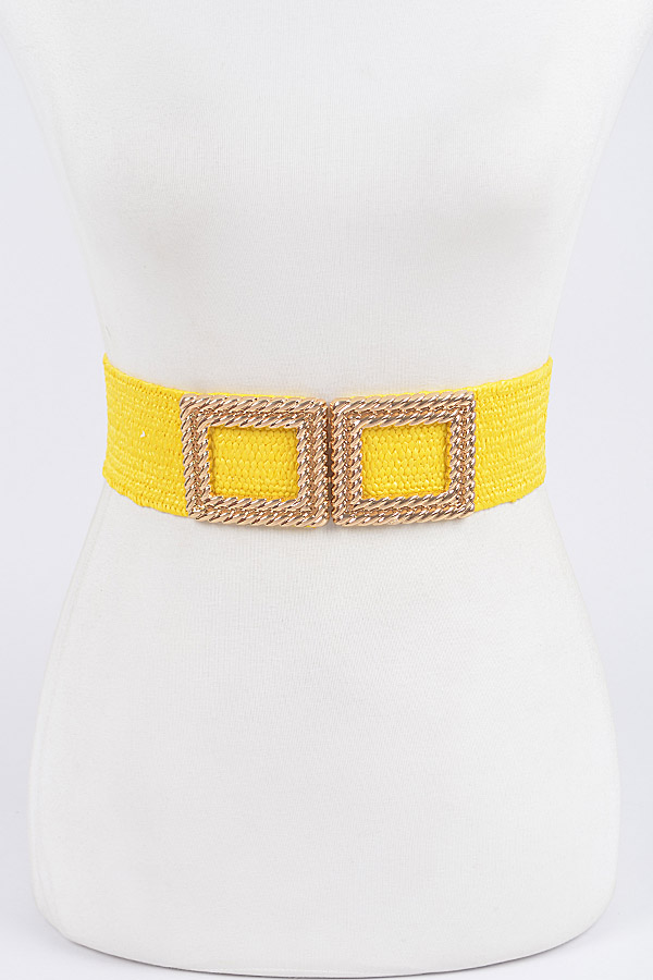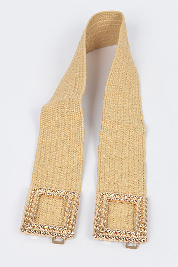 • * Big Metal Buckle Faux Straw Stretch Belt