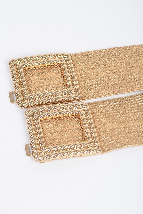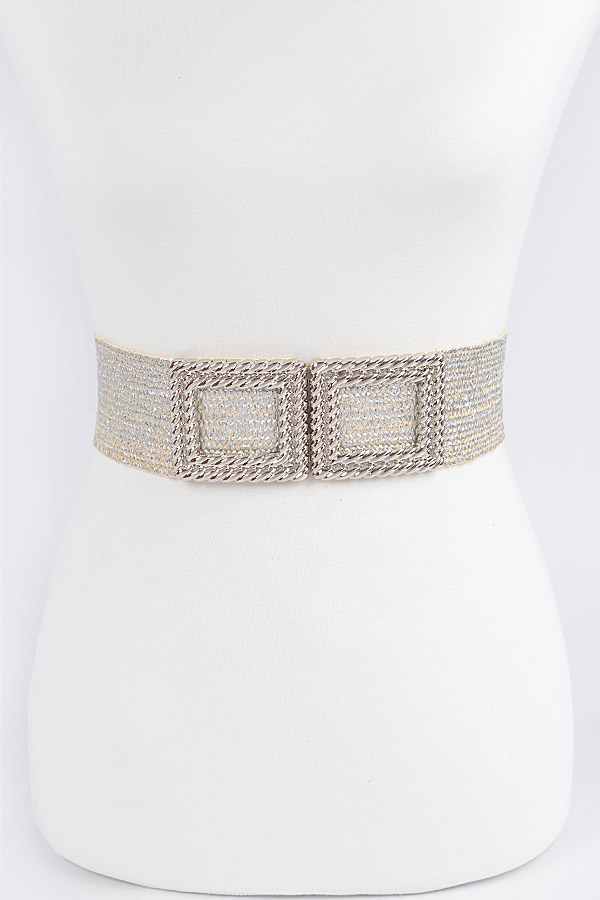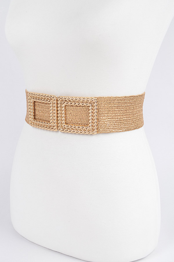 - * This Double Metal Buckle Elastic Belt from H&D Accessories has a stretchy elastic band. It features two metal buckles that form a dual - square design at the front. The wide, flexible structure ensures comfort and a snug fit.
