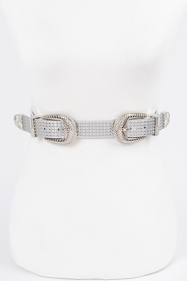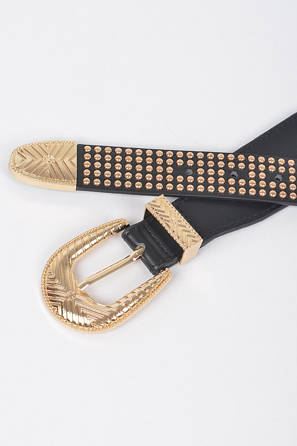 - * Vegan Leather Metal Studded Multi Metal Belt