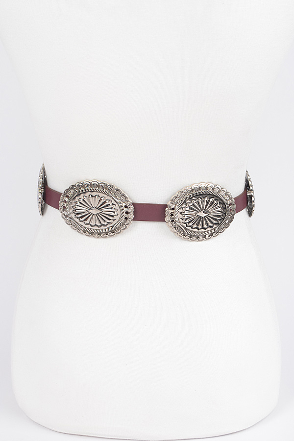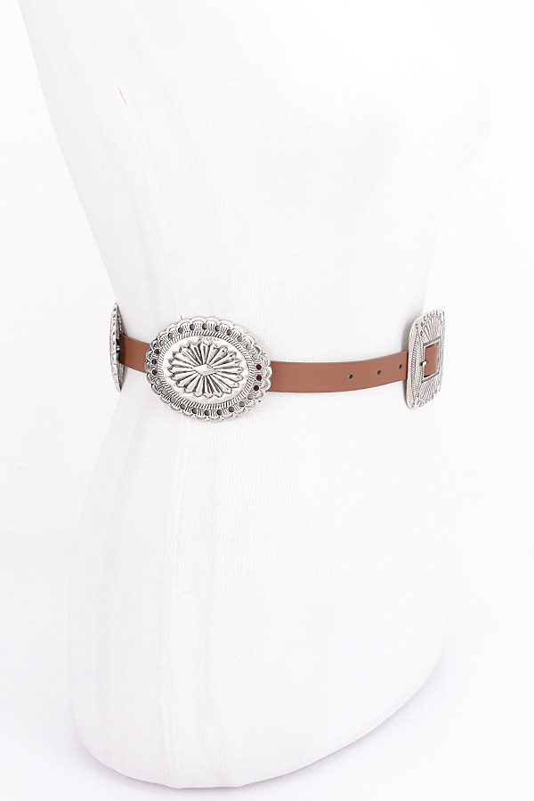 - * Faux Leather Western Style Multi Metal Belt