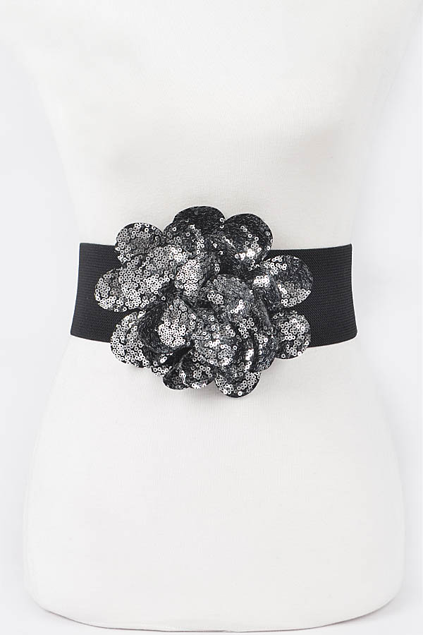 - * Sequins Flower Elastic Belt