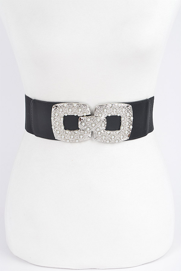 - * Introducing the "Rhinestone Pearl Buckles Elastic Belt" – a stunning belt that combines elegance and style. With its exquisite rhinestone faux pearl buckle, this belt from H&D Accessories. Perfect for adding a touch of sophistication to any outfit, this belt is a must-have accessory for those who appreciate both fashion and function.