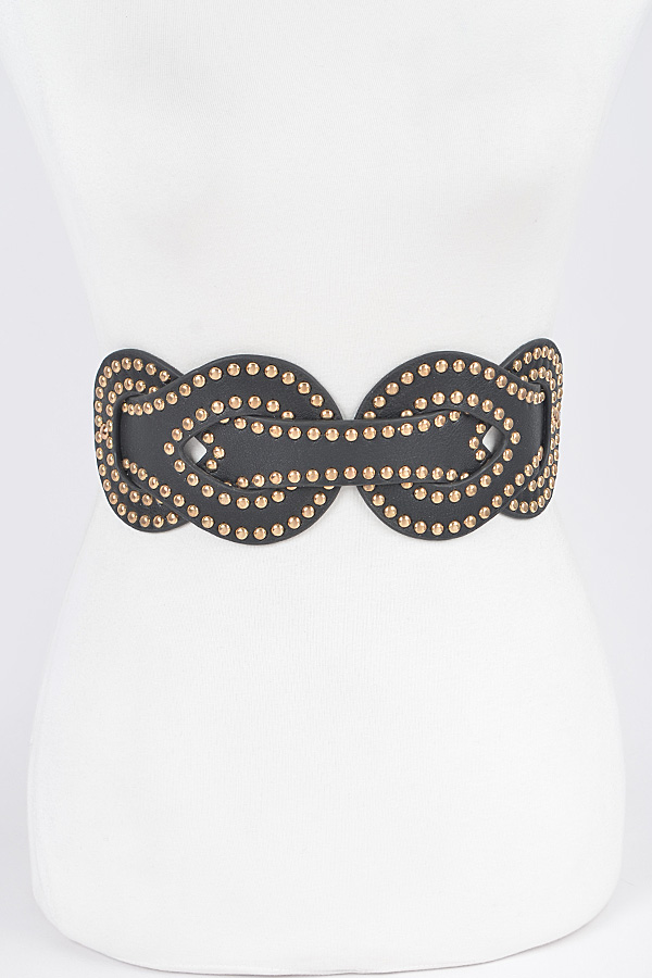 - * Introducing the "Faux Leather Metal Studded Elastic Belt" from H&D Accessories – a stunning fusion of elegance and edge. This black faux leather belt, adorned with striking studs, is the perfect accessory to elevate any outfit. Whether you're dressing up for a night out or adding flair to your everyday look, the Gilded Braid Belt is your go-to choice for style and sophistication.