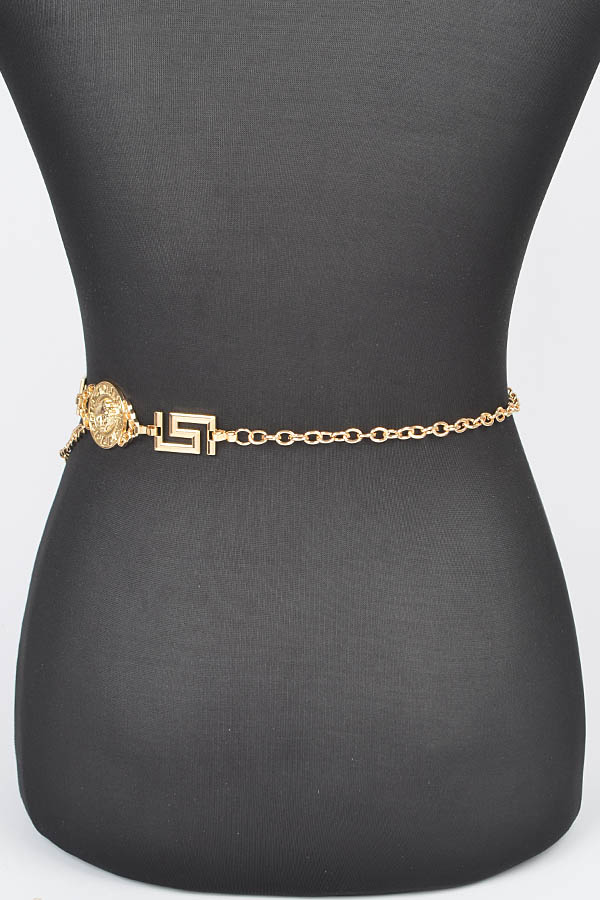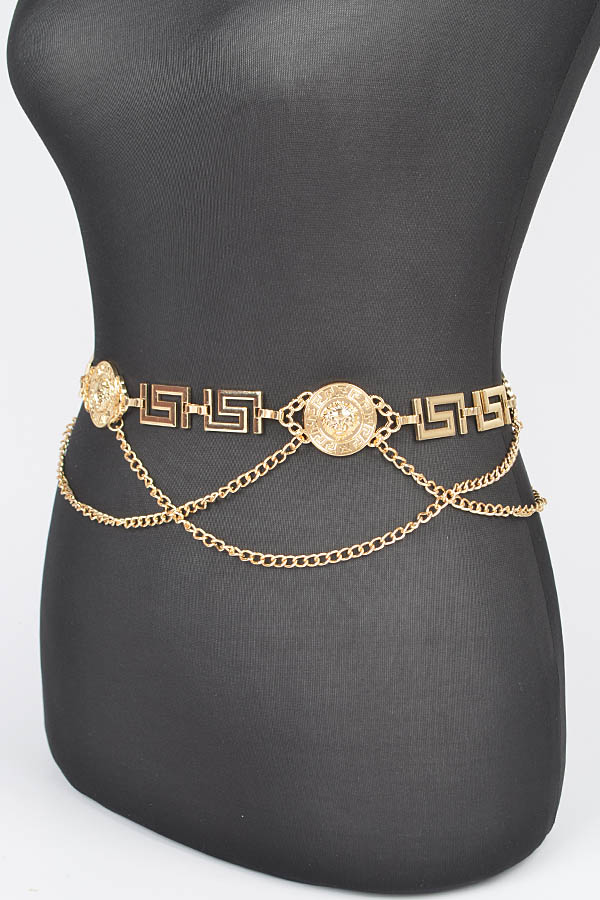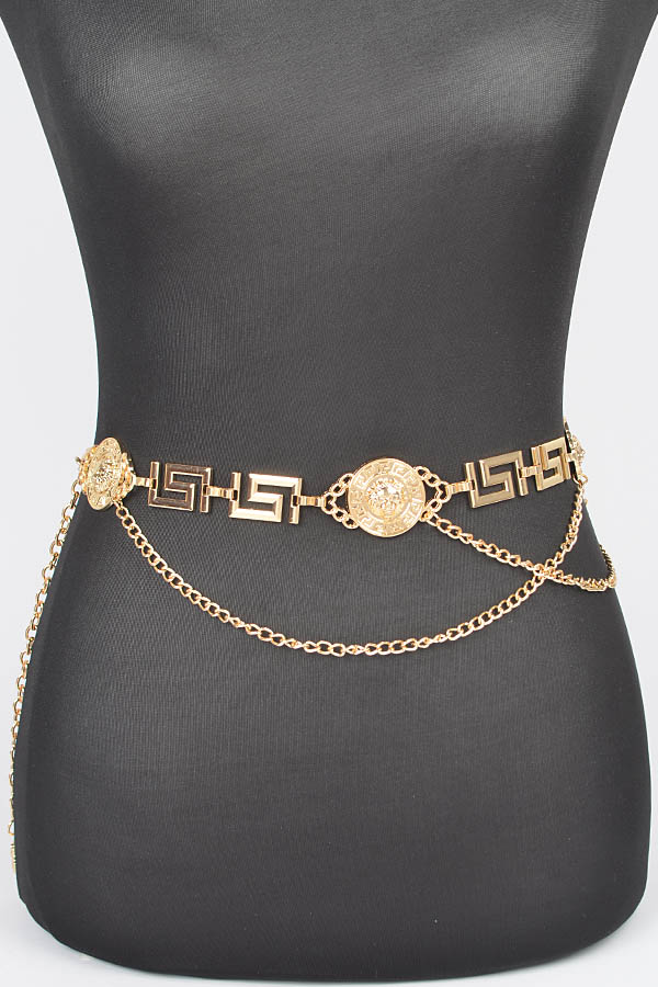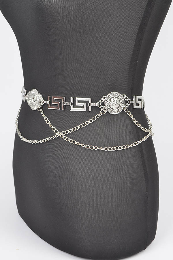• * This Metal Chain Belt from H&D Accessories is a statement - making accessory. It is crafted with a combination of ornate metal links and chains. The belt features intricate medallion - like embellishments and geometric patterns, creating an elaborate and eye - catching design. The layered chains add a dynamic and stylish element to the overall structure. Perfect for adding a touch of glamour to various outfits, it is an ideal choice for fashion - conscious individuals.