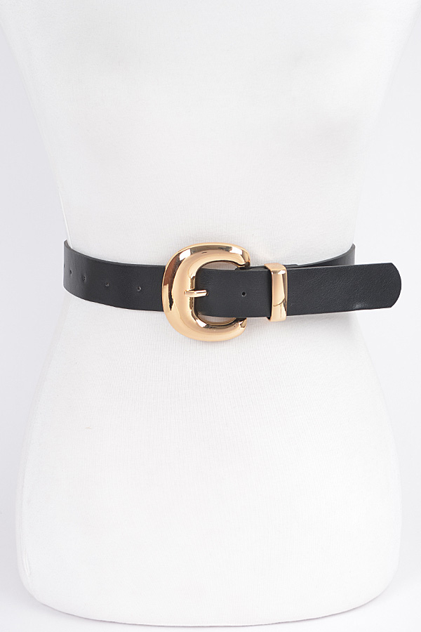- * Discover the "Faux Leather Metal Buckle Belt" – the perfect accessory for the modern woman. Crafted from high-quality faux leather, this belt showcases a bold metal buckle that exudes confidence and charm. Make a statement with this exquisite piece from H&D Accessories.