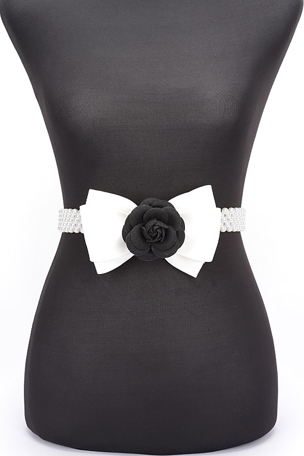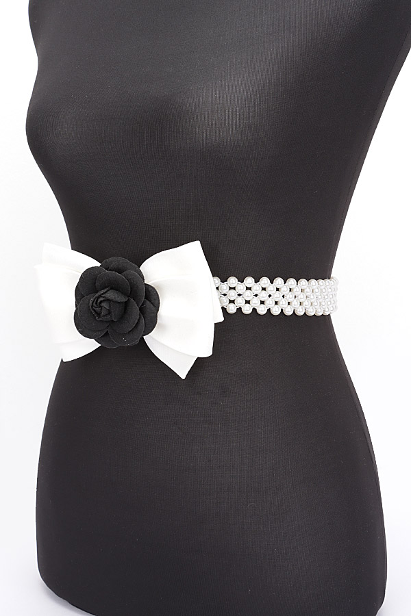 - * Elevate your style with our new Flower Ribbon Faux Pearl Stretch Belt from H&D Accessories. This chic belt with a delicate flower detail is the perfect accessory to add a touch of elegance to any outfit.