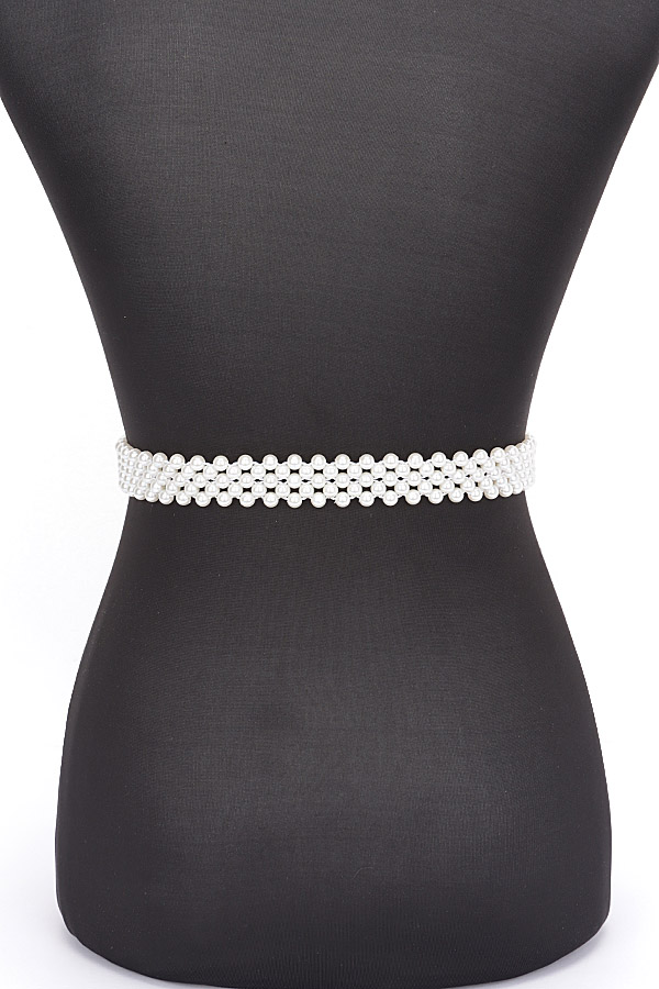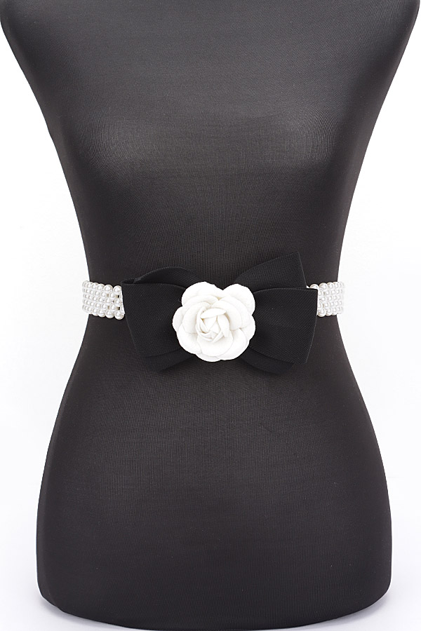 - * Flower Ribbon Faux Pearl Stretch Belt