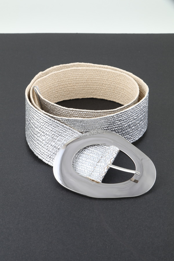 - * Vintage Metal Buckle Metallic Stretch Straw Belt