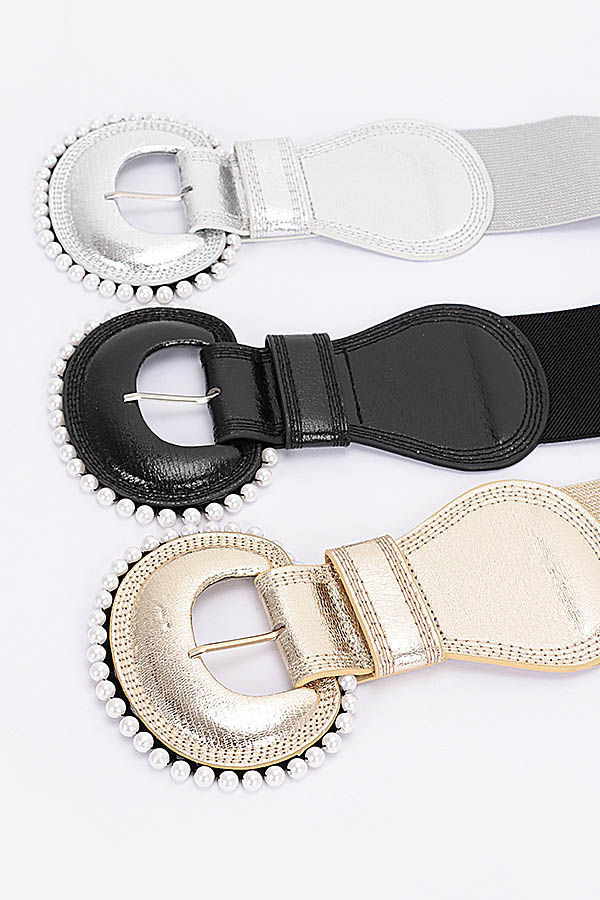 - * Discover the "Pearl Metallic PU Elastic Belt" from H&D Accessories – where sophistication meets functionality. This chic belt features a luxurious buckle that adds a touch of glamour to your look. Made from high-quality faux Pearl and Metallic PU, it stretches for a perfect fit, ensuring you feel as fabulous as you look.