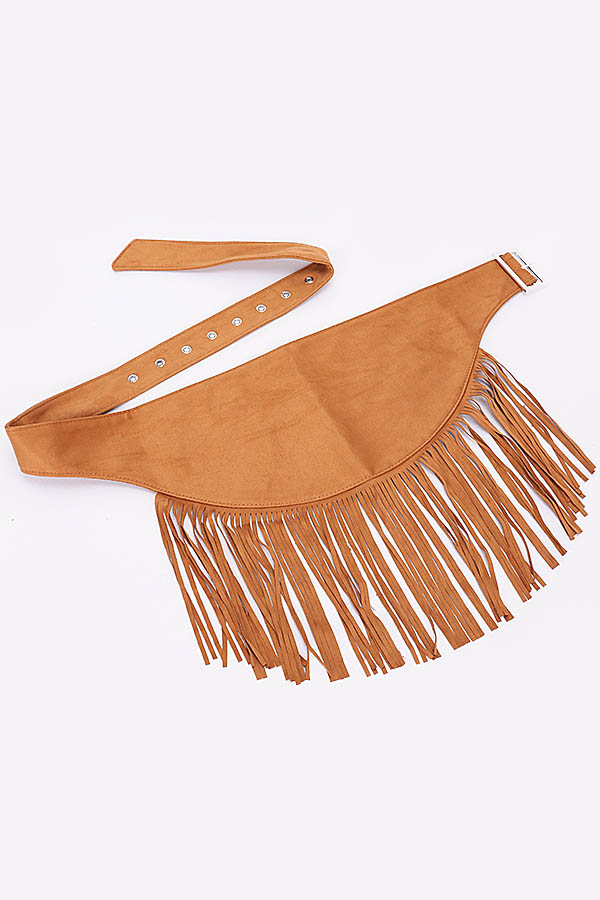 - * Introducing the "Fringe Flair Tan Belt" – a stunning accessory that combines style and sophistication. Crafted from faux suede, this belt features playful fringes that sway with every movement, while the chic buckle adds a touch of elegance. Elevate your wardrobe with this must-have piece from H&D Accessories.