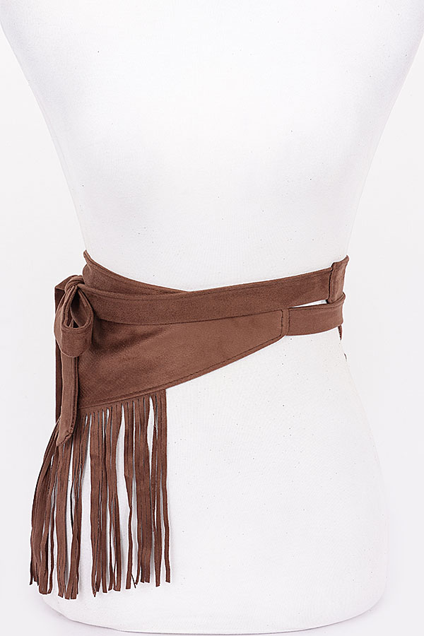 - * Discover the "Faux Suede Fringe Belt" by H&D Accessories. This stunning belt features eye-catching fringes that sway with every movement, offering a unique blend of sophistication and fun. It's the ideal finishing touch for both casual and dressy looks.