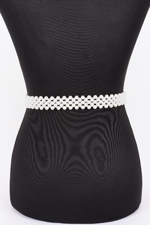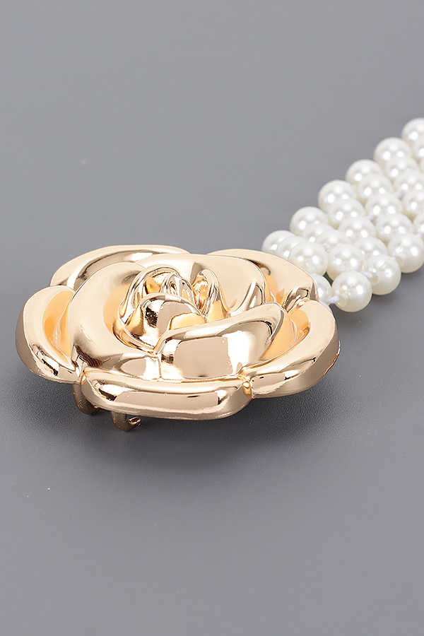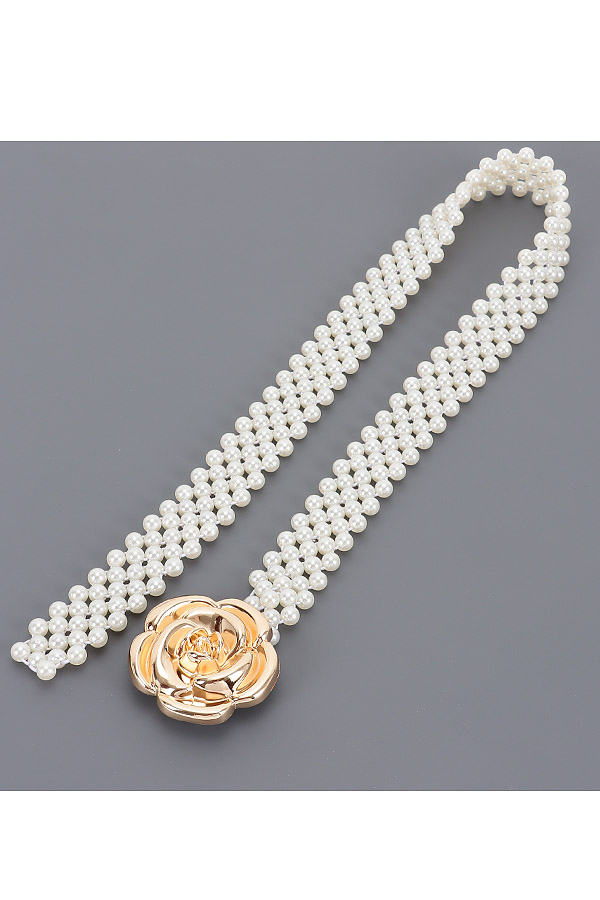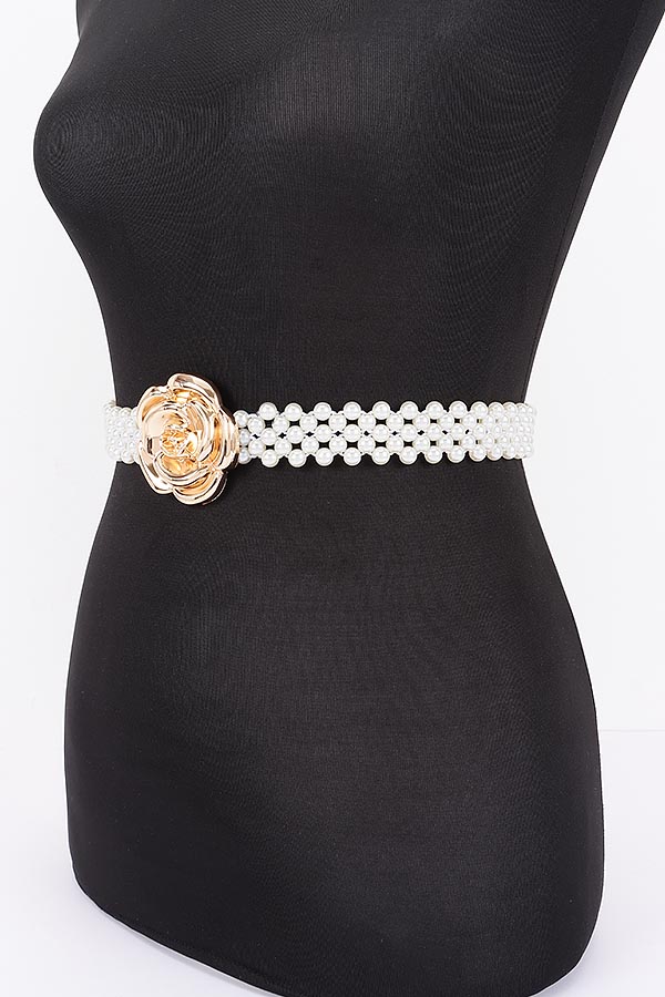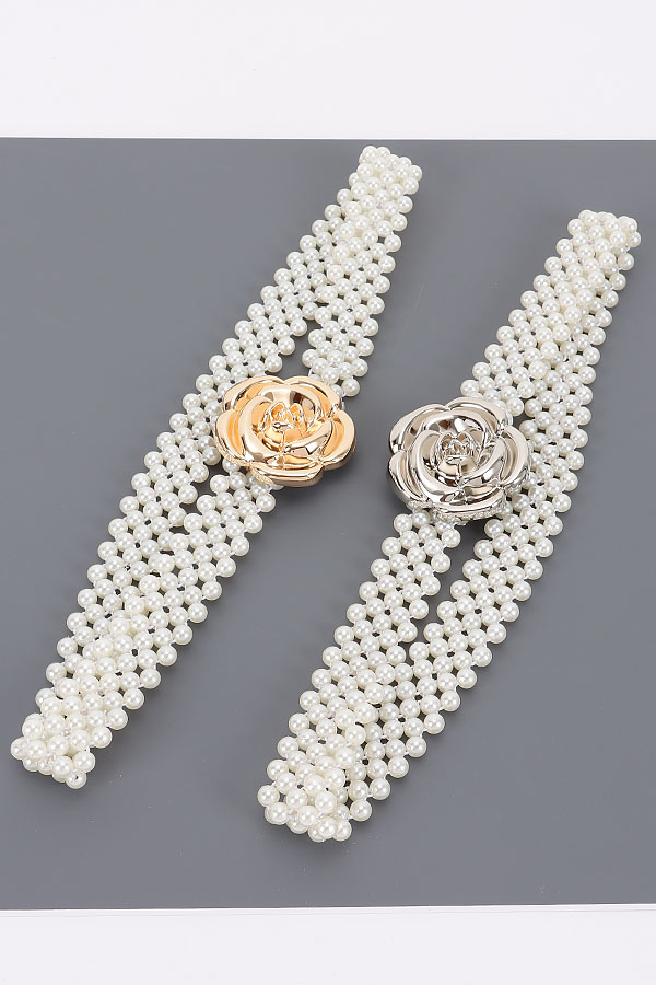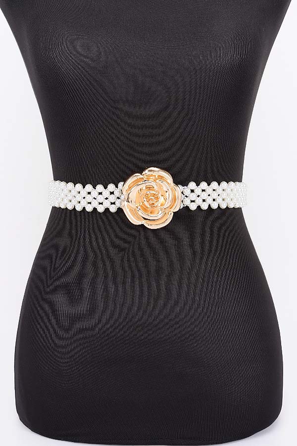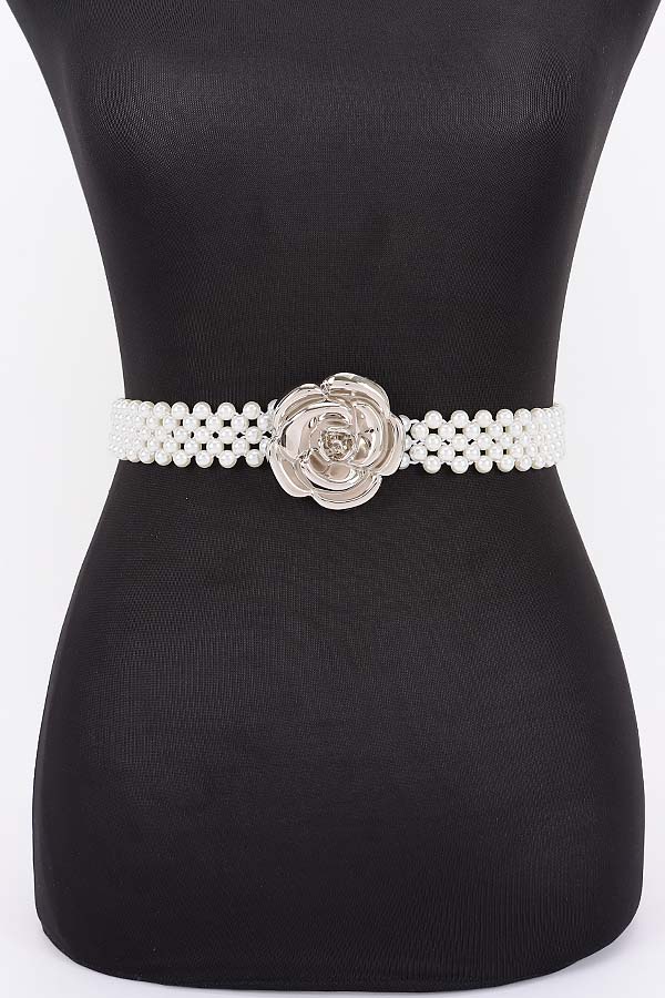 - * Faux Pearl Metal Flower Buckle Stretch Belt