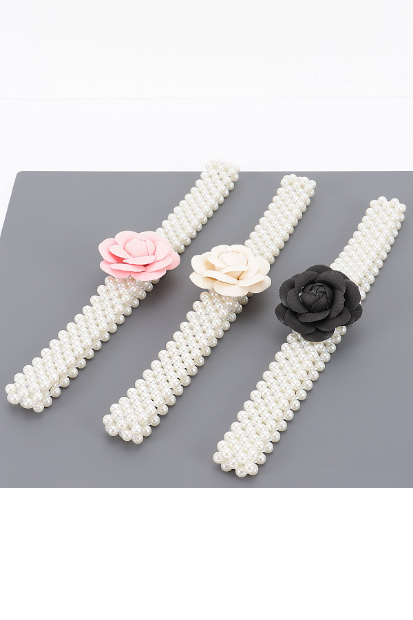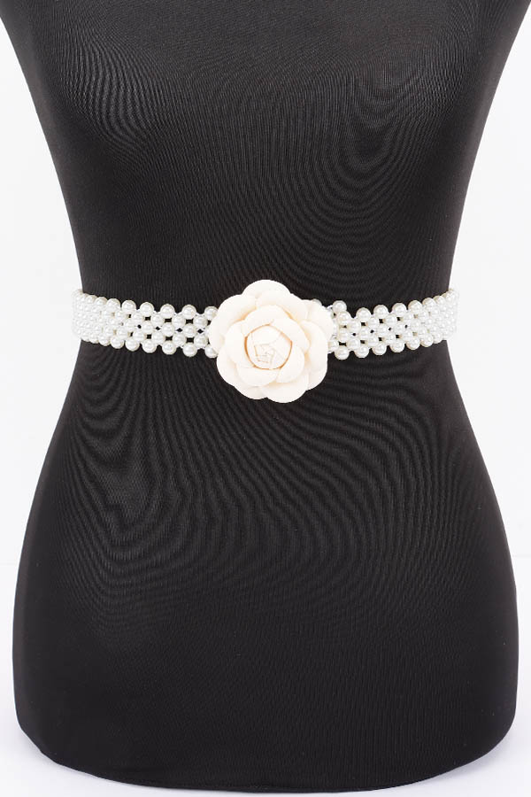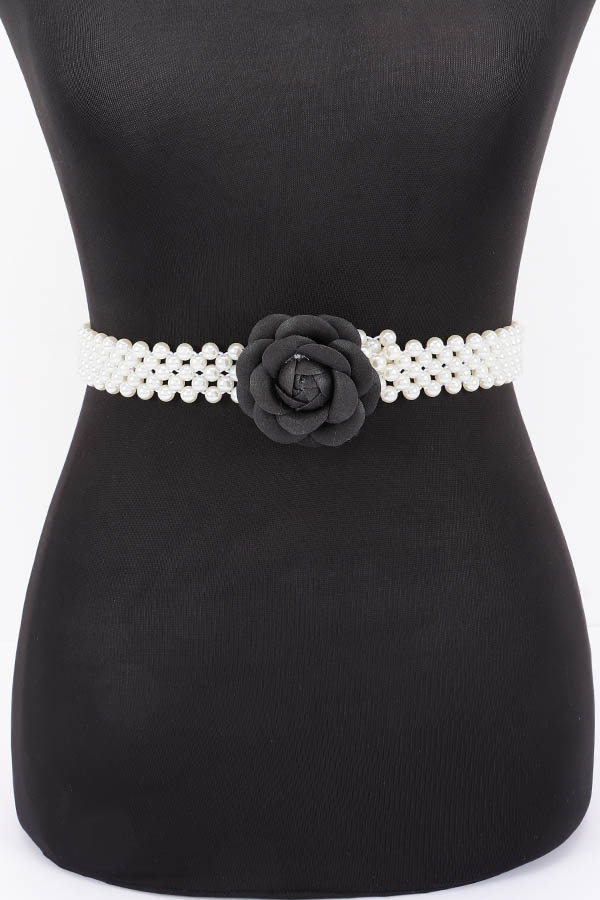 - * Introducing the Faux Pearl Flower Buckle Stretch Belt: a stunning women's accessory that features a charming flower buckle and a luxurious faux pearl. Elevate your outfit with this stylish stretch belt from H&D Accessories, designed to add a touch of elegance and femininity to any ensemble.