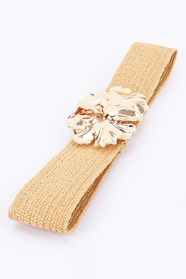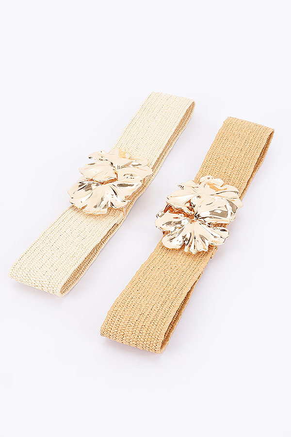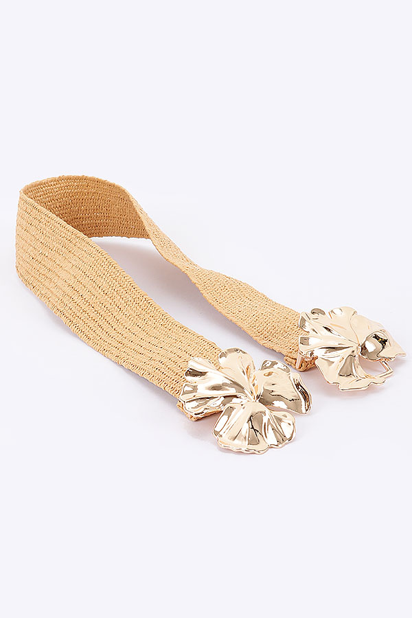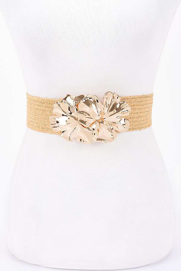 - * Introducing the "Faux Straw Large Metal Flower Stretch Belt" – a stunning accessory that combines elegance and nature. This belt from H&D Accessories is perfect for adding a touch of floral charm to any outfit. Elevate your style with this unique piece that celebrates both beauty and sophistication.