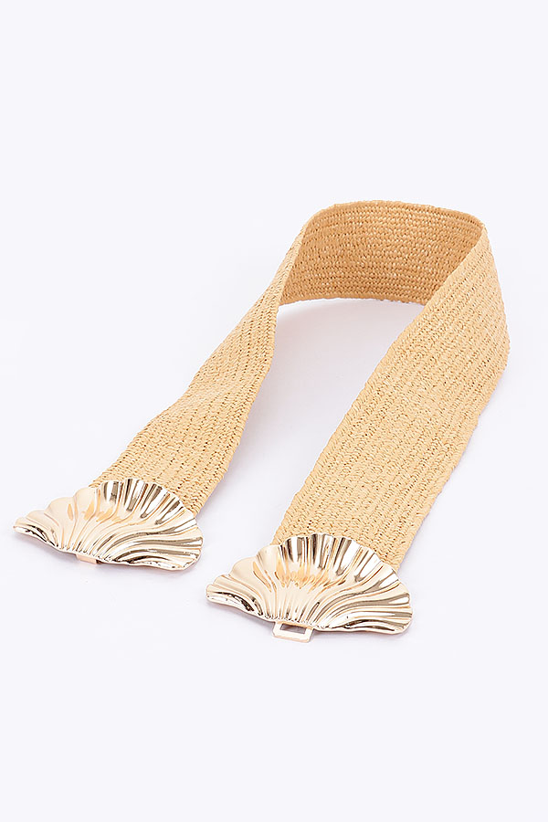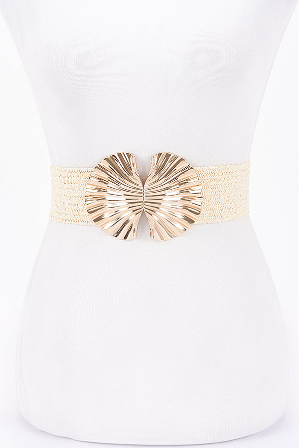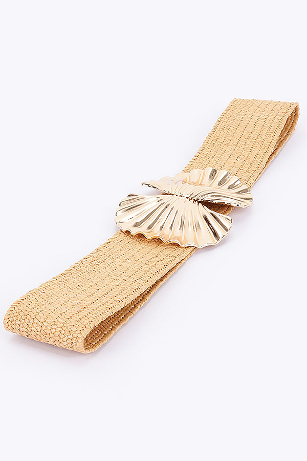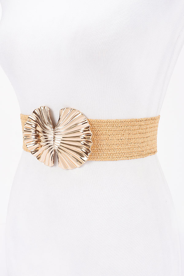 - * Meet the "Faux Straw Metal Flower Stretch Belt" – an eye-catching accessory that adds a touch of glamour to any ensemble. With its striking metal flower buckle and faux straw design, this stretch belt from H&D Accessories is a must-have for fashion-forward individuals looking to stand out.