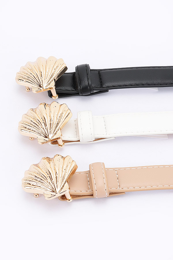 - * Introducing the "Faux Leather Metal Shell Buckle Belt" from H&D Accessories – a stunning blend of elegance and style. This belt features a striking metal shell buckle, making it the perfect accessory to elevate any outfit. Whether you're dressing up for a night out or adding a touch of sophistication to your everyday look, the Gold Shell Luxe Belt is your go-to choice.