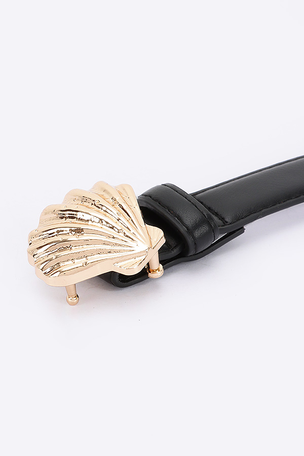 - * Faux Leather Metal Shell Buckle Belt