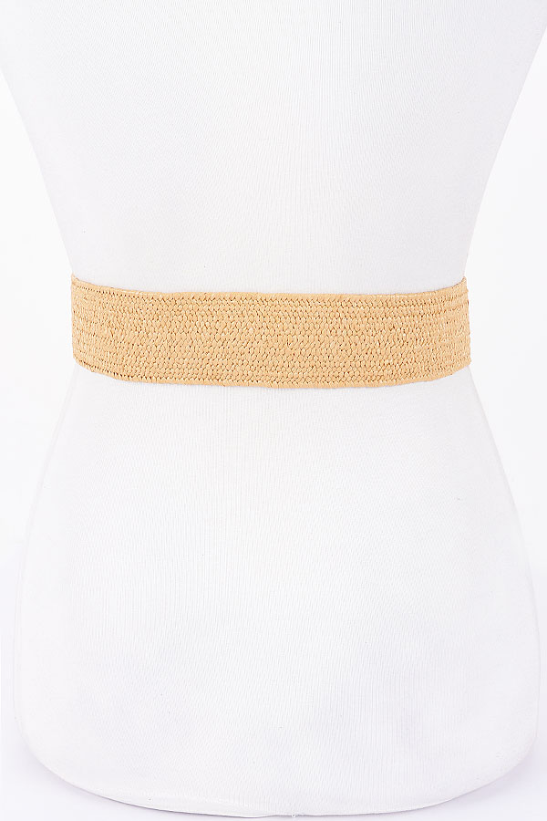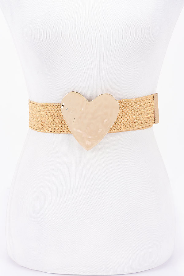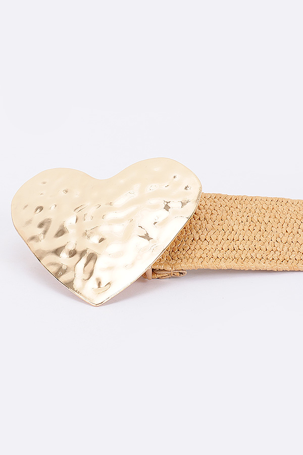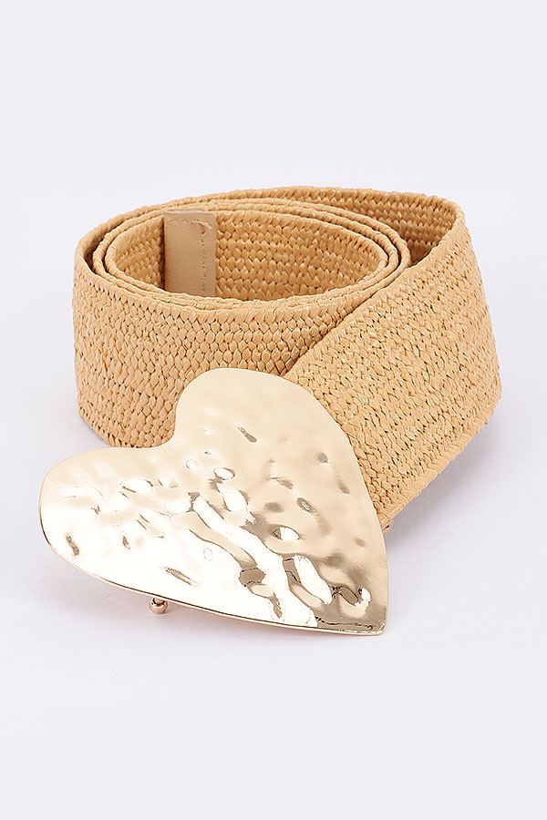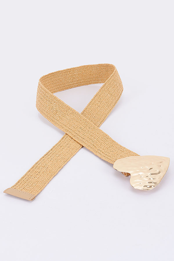 - * Faux Straw Large Metal Heart Buckle Stretch Belt