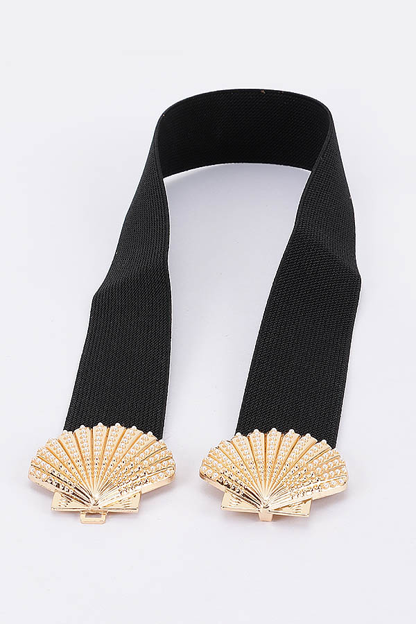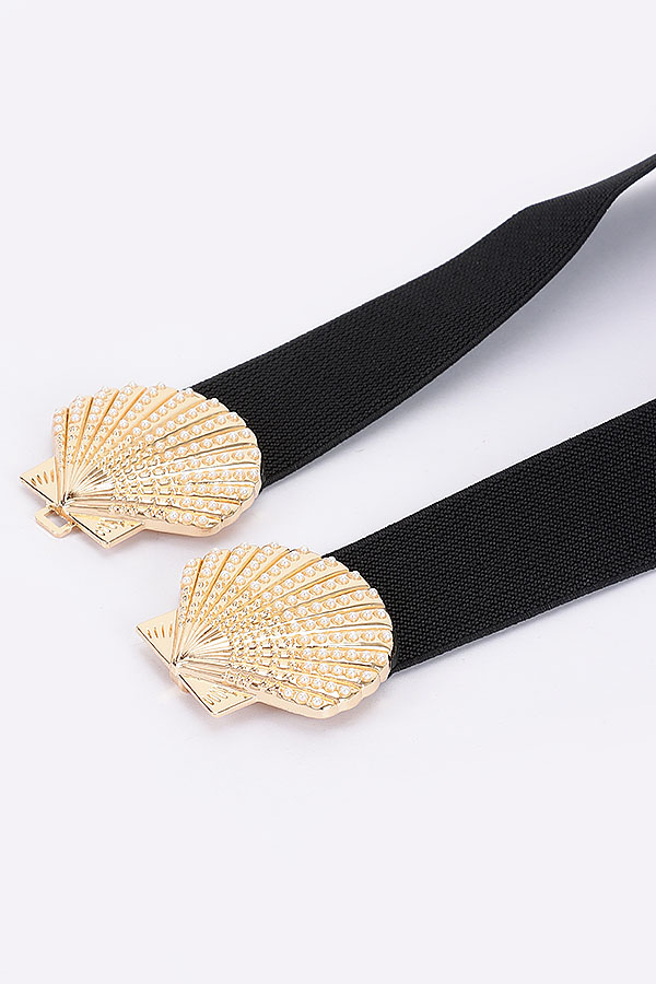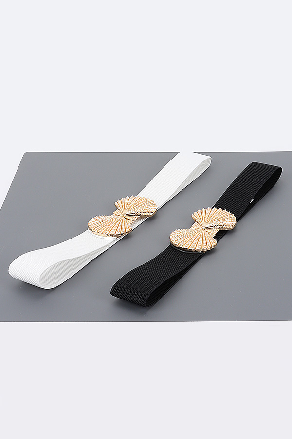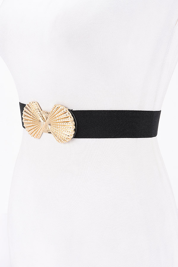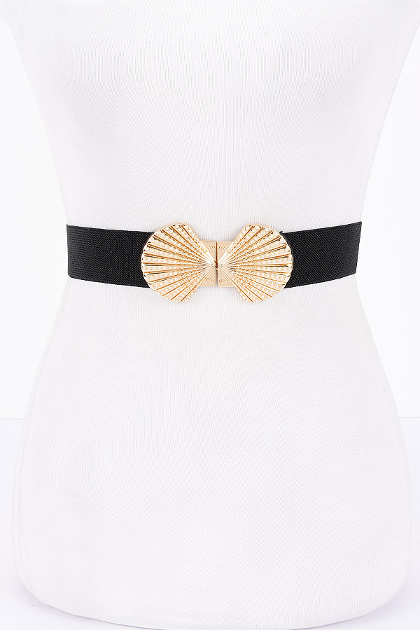 - * Introducing the "Double Metal Shell Buckle Stretch Belt" from H&D Accessories – a stunning blend of elegance and functionality. This belt features two striking metal shell buckle, making it the perfect accessory to elevate any outfit. With its stretchable material, it promises comfort without compromising on style.