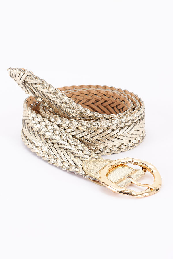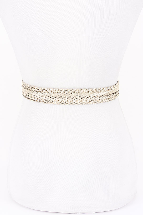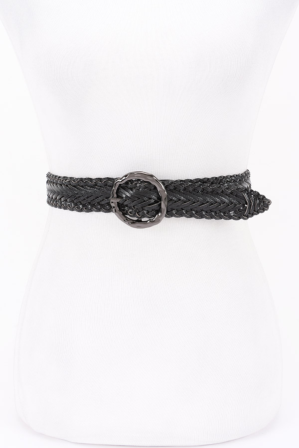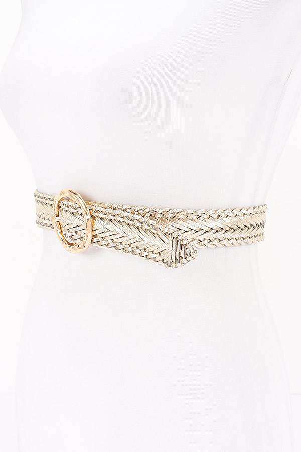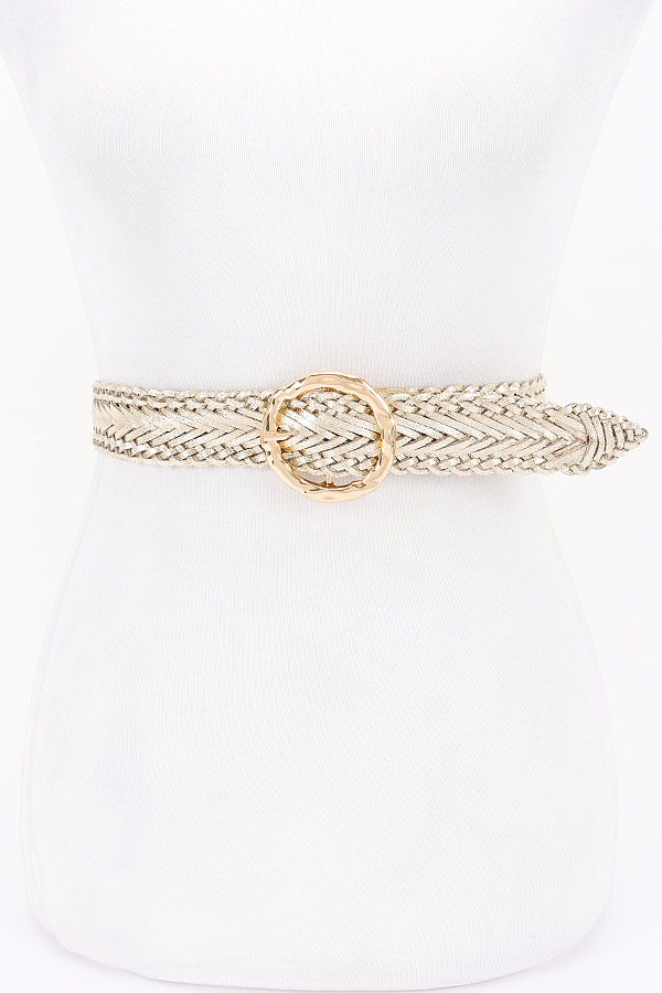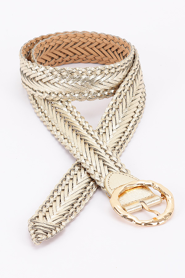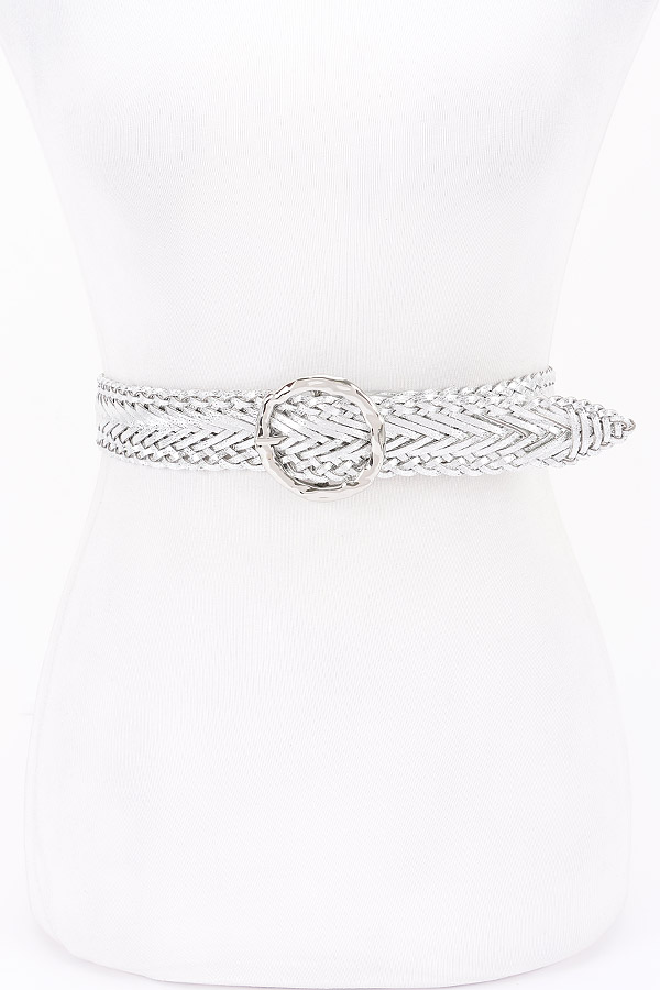 - * Introducing the "Faux Metallic Leather Braided Belt" – a stunning blend of elegance and style, perfect for elevating any outfit. Crafted from faux metallic leather, this belt features a striking metal buckle that adds a touch of sophistication. Make a statement with this versatile accessory from H&D Accessories.