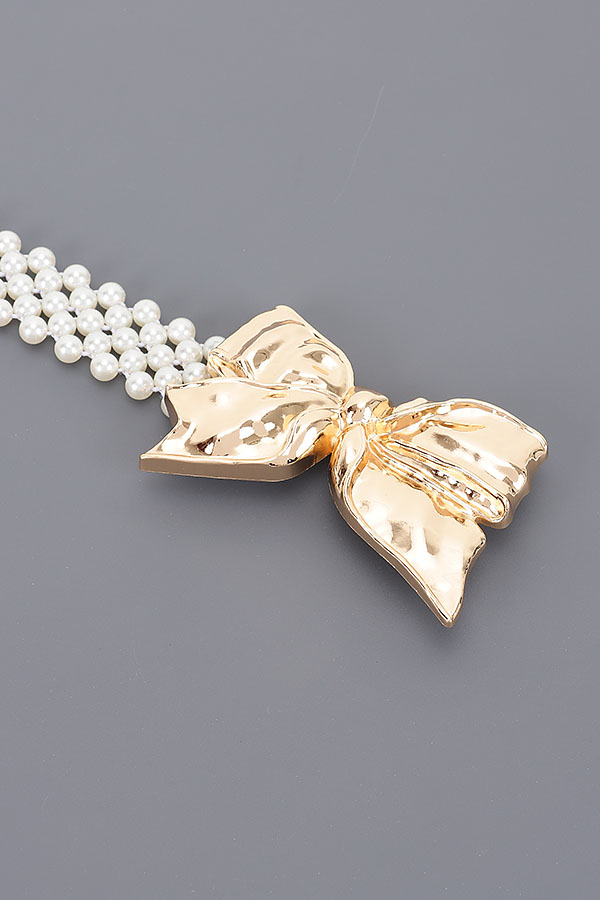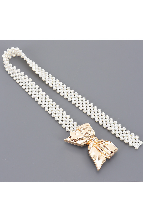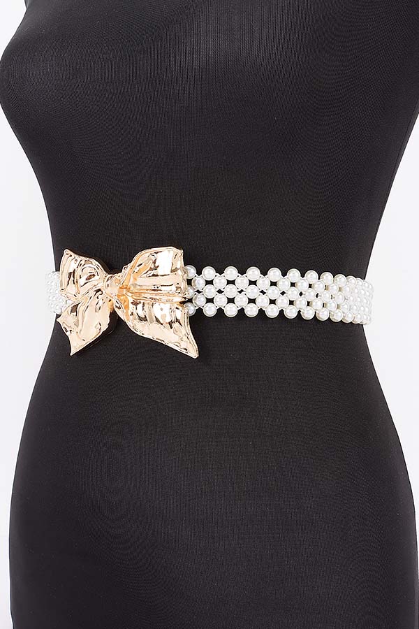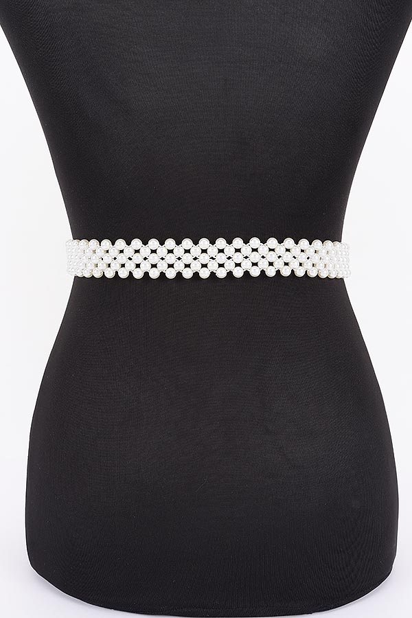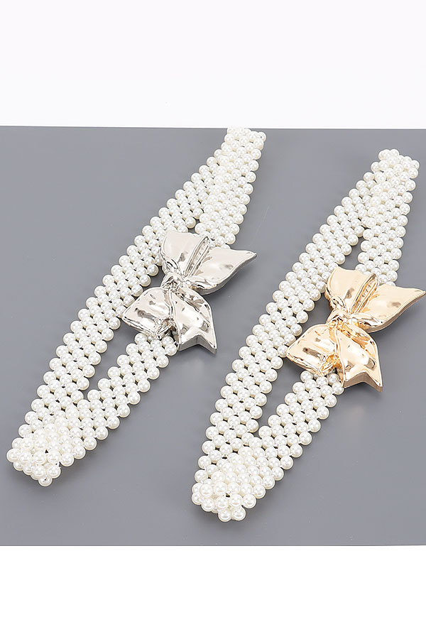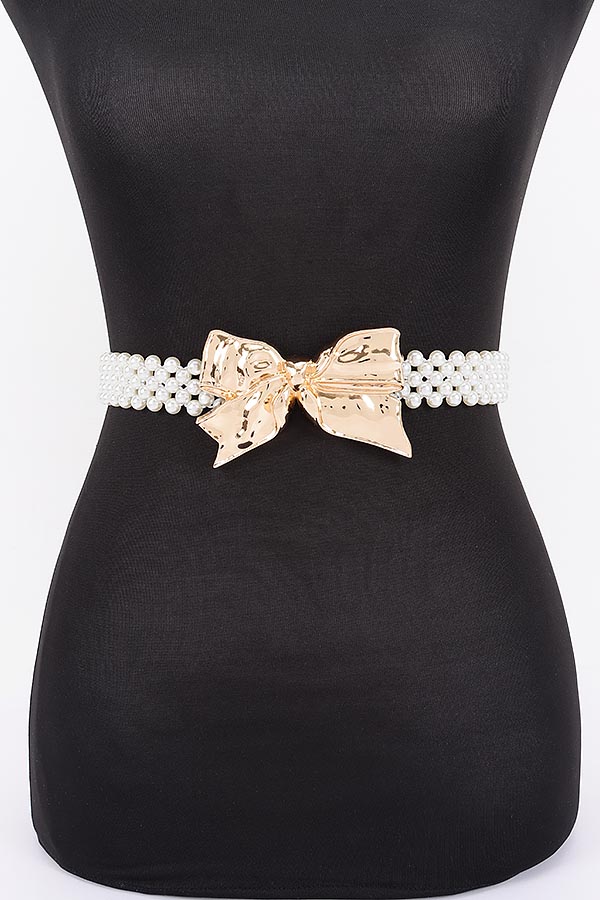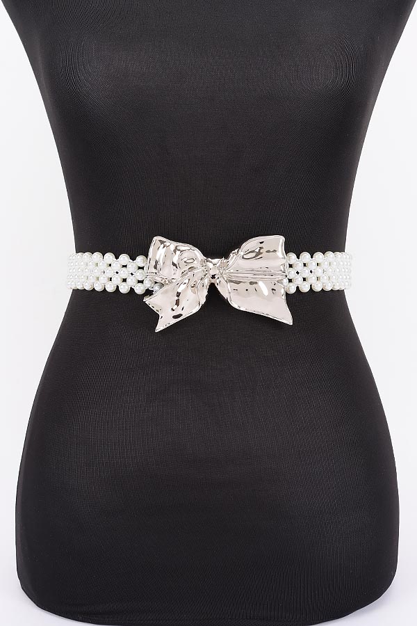 - * Faux Pearl Metal Ribbon Stretch Belt