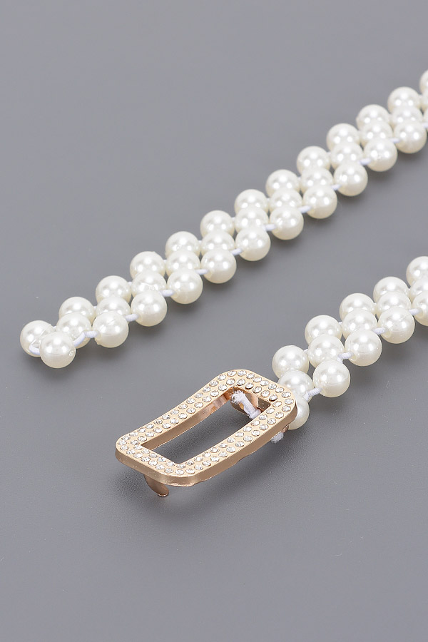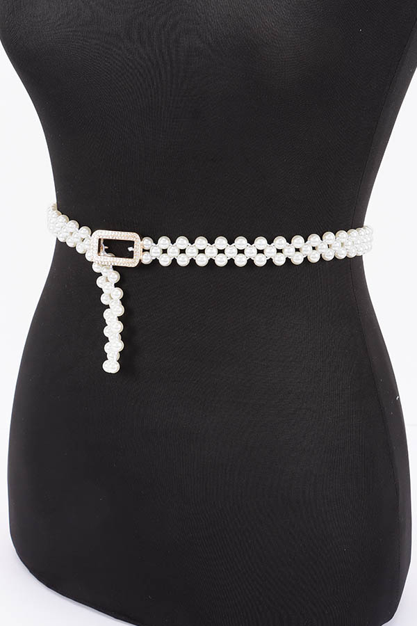 - * Rhinestone Buckle Faux Pearl Stretch Belt