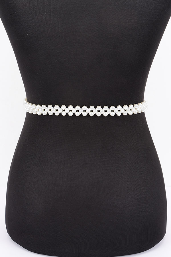 - * Introducing the "Pearl Elegance Stretch Belt" – a stunning accessory that combines sophistication and style. This belt features a beautiful rhinestone buckle and a luxurious faux pearl design, perfect for elevating any outfit. Make a statement with this exquisite piece from H&D Accessories.