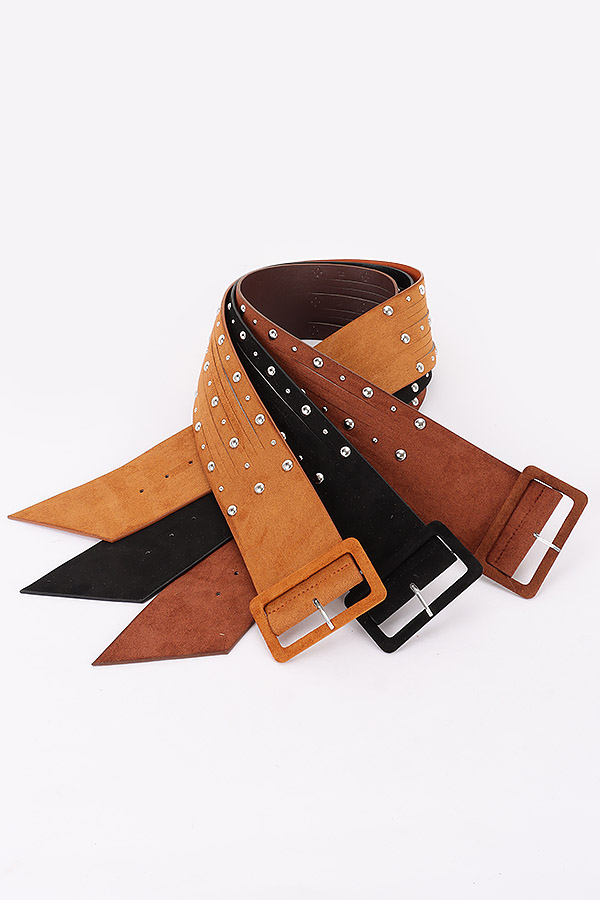 • * This Wide Studded Buckle Belt from H&D Accessories features a wide design with studded details and a prominent buckle. It has a bold and edgy appearance, giving off a stylish and statement - making vibe.Perfect for complementing edgy or rocker - inspired outfits when going to concerts, clubs, or other venues with a similar aesthetic.
