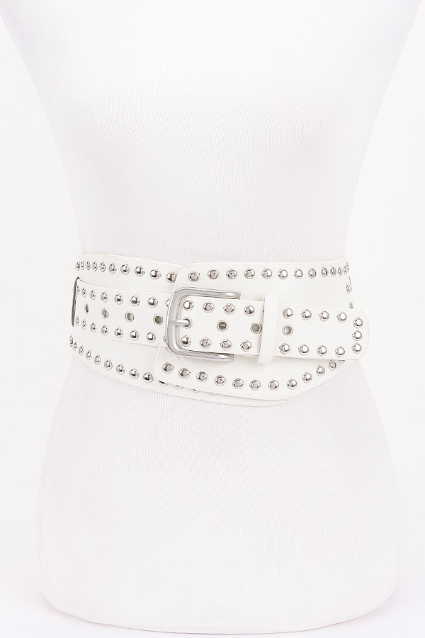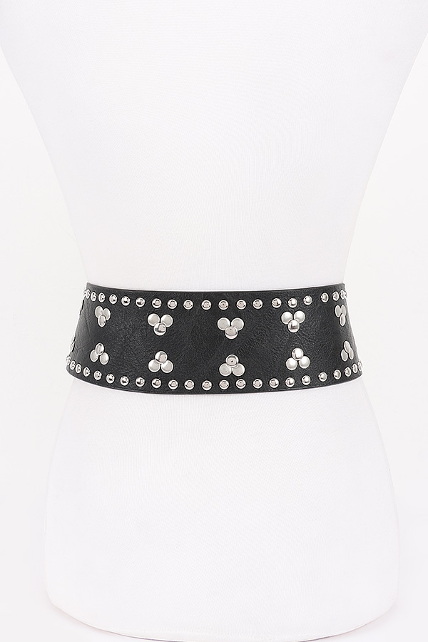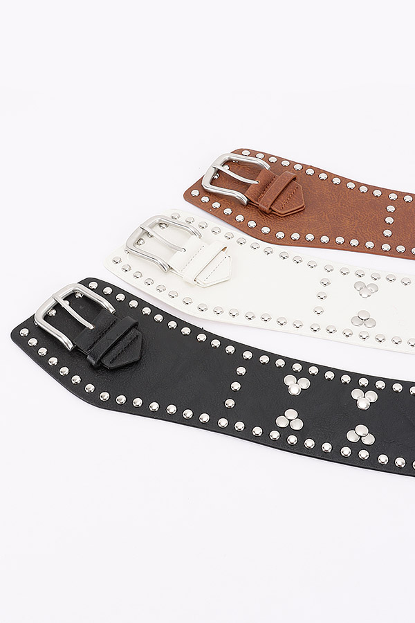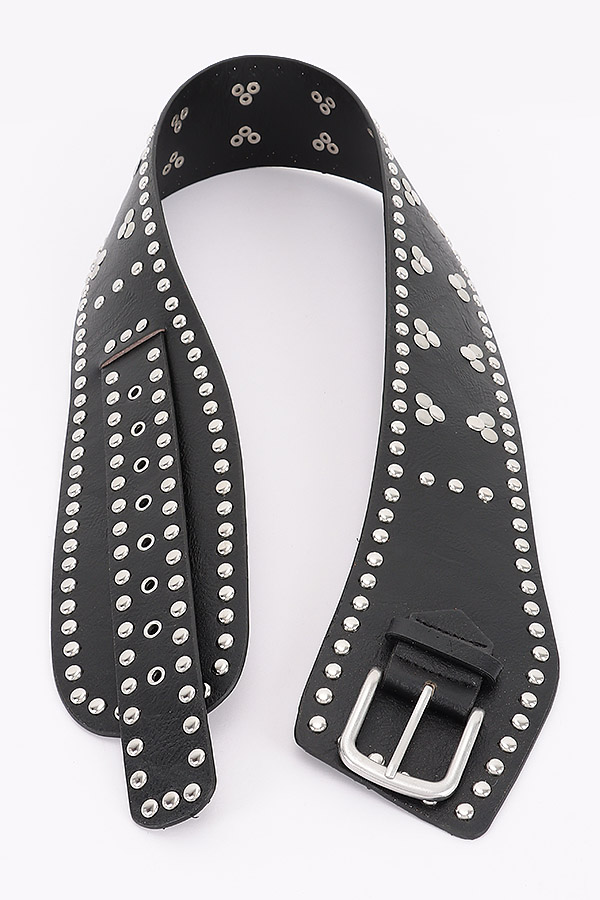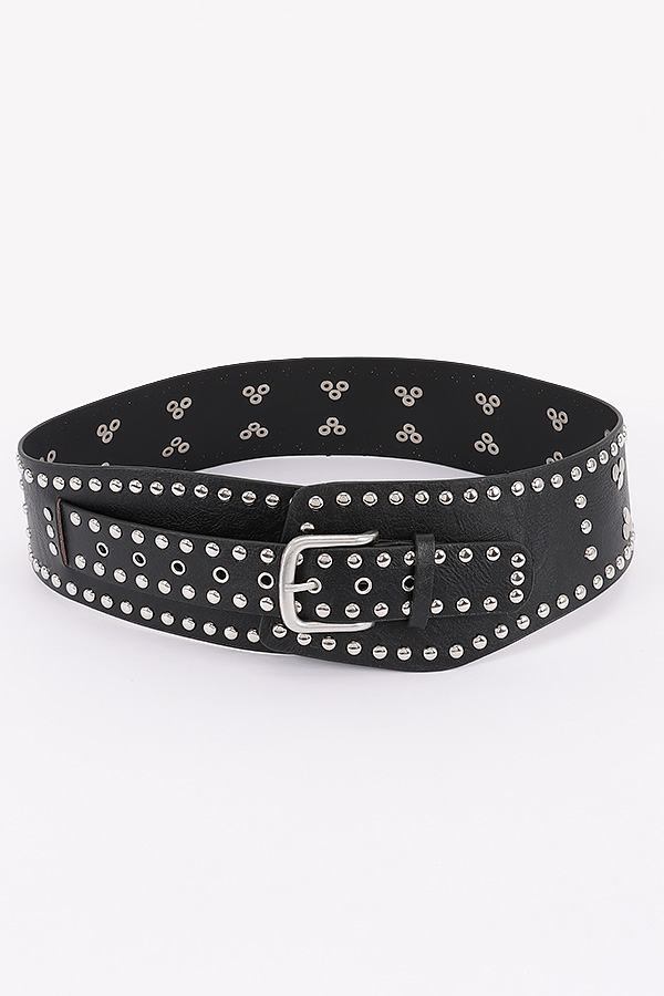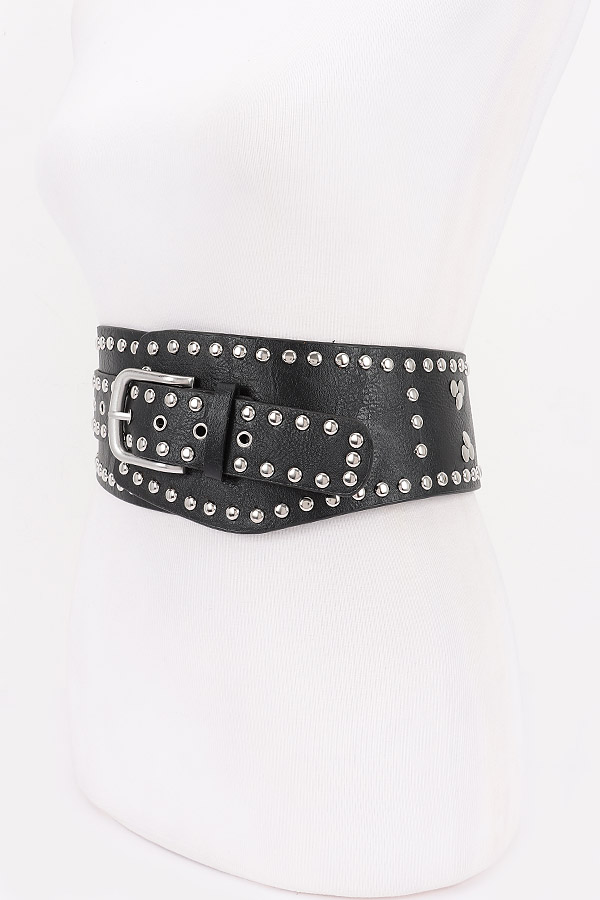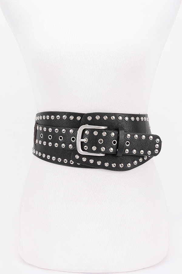 - * This is a wide belt decorated with multiple rows of metal studs, featuring a classic buckle design. From H&D Accessories, it adds an edgy and stylish touch to outfits.