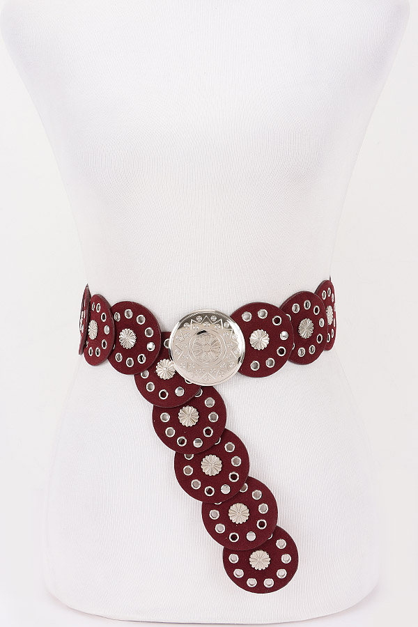 - * This is a distinctive belt featuring a series of circular elements. It has a large, ornate central buckle and multiple circular decorations with intricate patterns. The belt has a unique, eye - catching design. From H&D Accessories, it combines bold styling and detailed craftsmanship for a standout accessory.